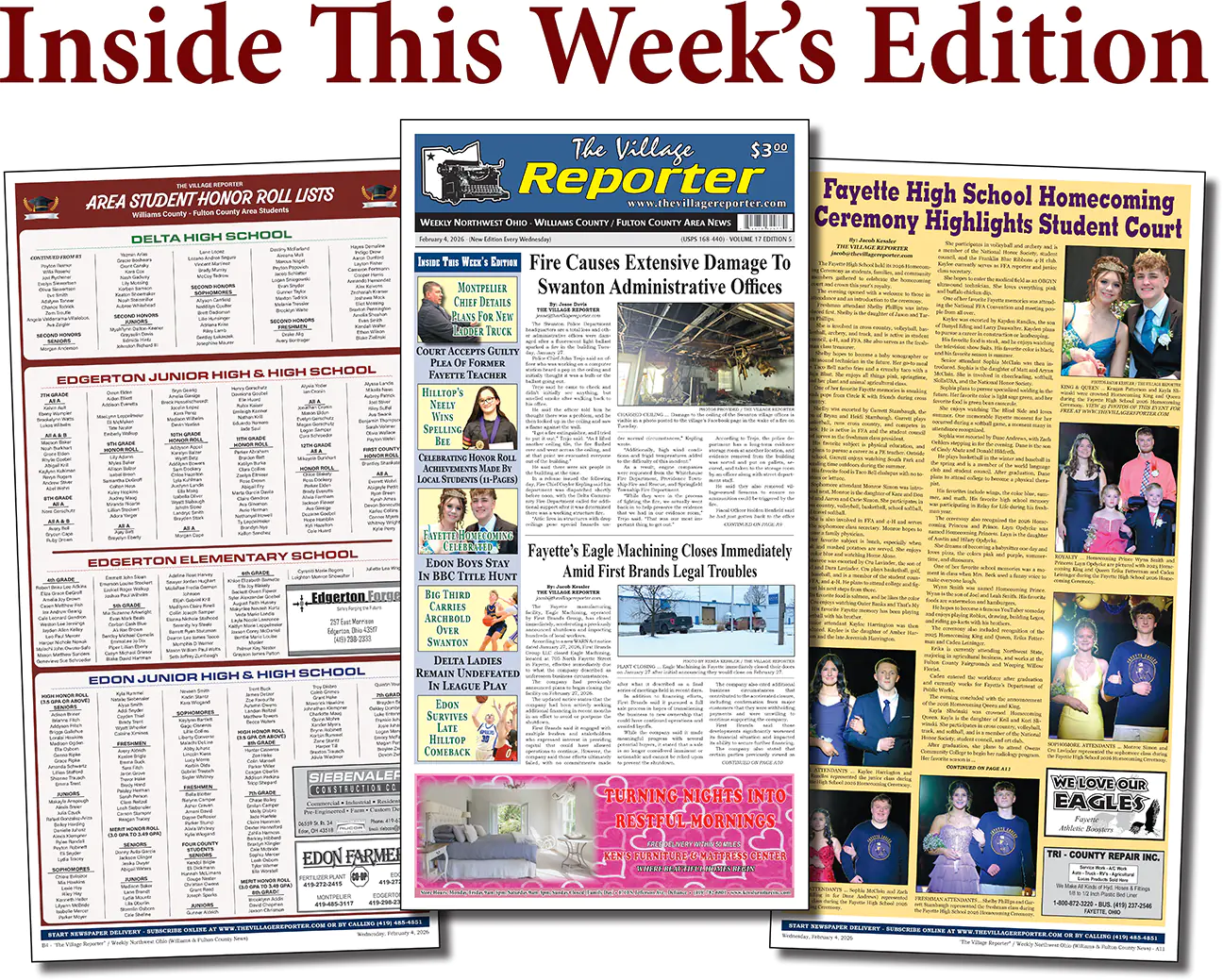 Inside this week’s newspaper edition, you will find 48-pages of the news you care about most – LOCAL community news and sports. Subscriptions include mailing the traditional print copy and the weekly emailed E-Edition, along with giving full access to news stories as they become available here online (daily news format). Not a subscriber? Purchase a single print or E-Edition copy before newspapers are replaced on Wednesday, February 11, 2026.