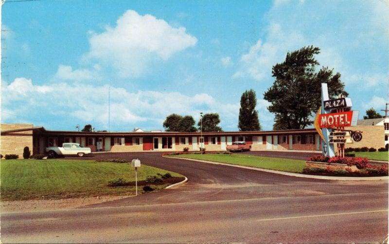 The motel also has carpeting, television, room phones and coffee makers in each unit.” In 2001, the Plaza Motel was expanded by adding seven units and a customer convenience center with a washer and dryer, and also ice, pop and snack machines. This picture postcard featuring the Plaza Motel, postmarked in 1960, is from the Kevin Maynard collection–Courtesy of the Williams County, Ohio, Local History Exchange.