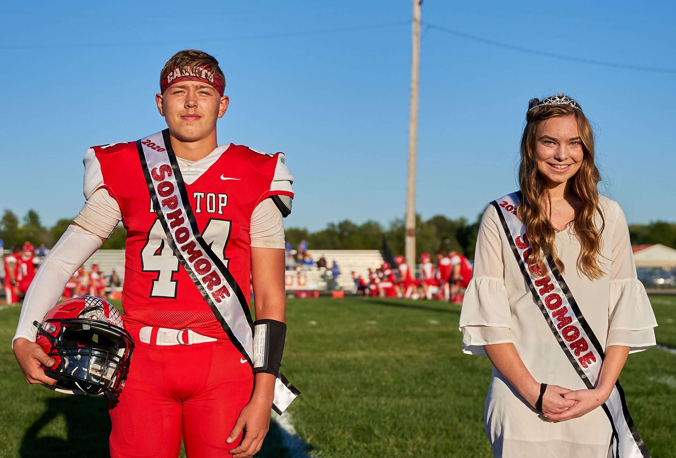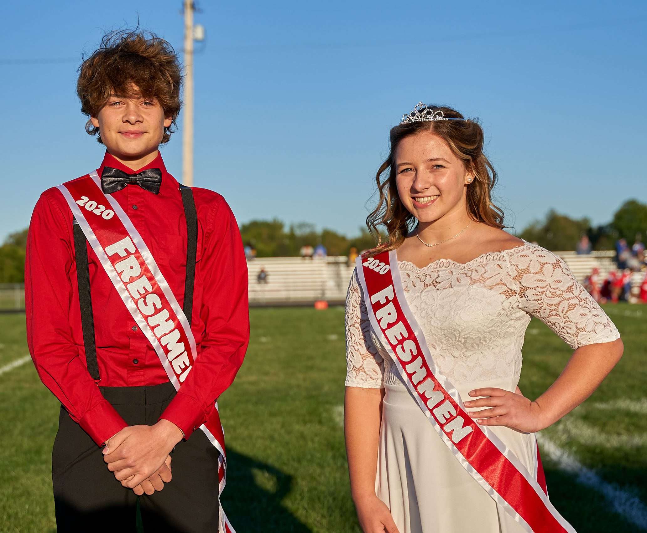 Freshman attendant, Joscelyn Layman, and her escort, Raace Haynes. Joscelyn is the daughter of Troy and Brittnee Layman & Amanda and Matt Lennard. Joscelyn is involved in volleyball, softball, FFA, student council, 4-H, and she serves as president the Hillsdale County Junior Livestock Committee. Joscelyn’s future plans include attending Michigan State University to become a large animal veterinarian or a livestock nutritionist. Short term, though, she’d like to get that knee brace off!