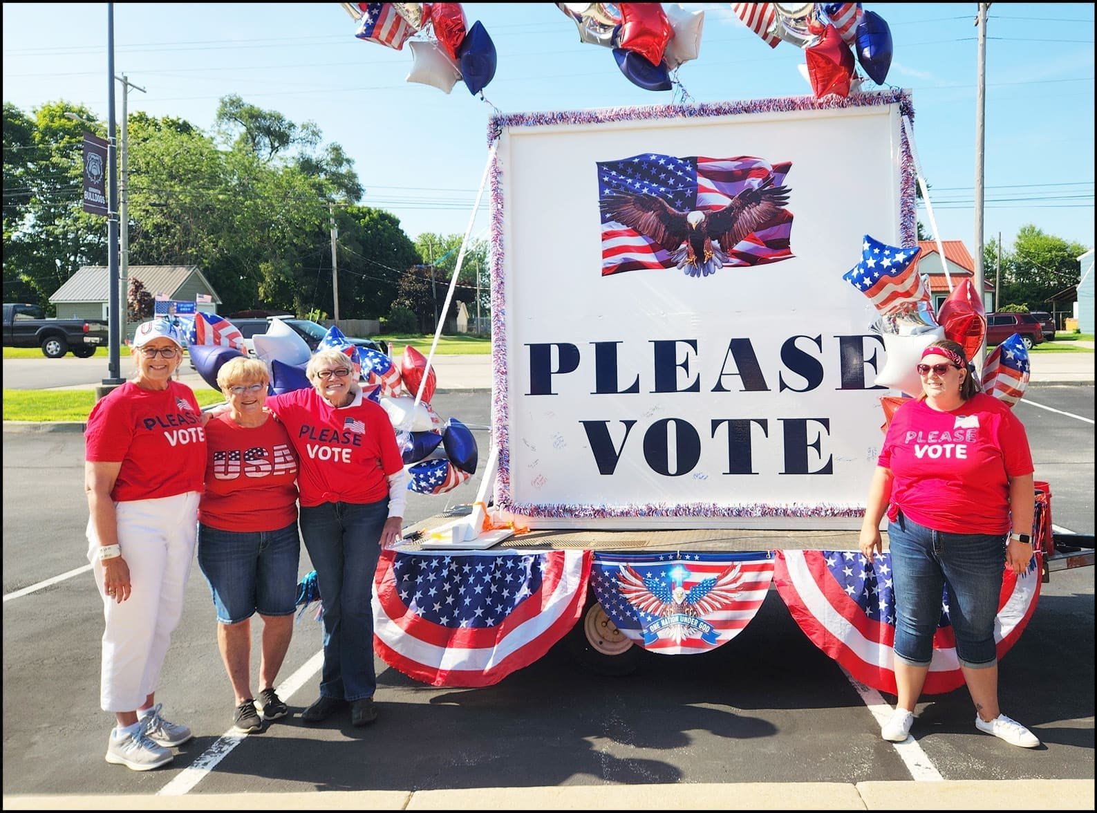 The parade entries included local police and fire vehicles. American Legion Post 10 carried the flags followed by the village council members Leslie VanAusdale, Pam Wampler, Jason Gruver, Lance Bowsher, and Sharon Blinzler on golf carts.