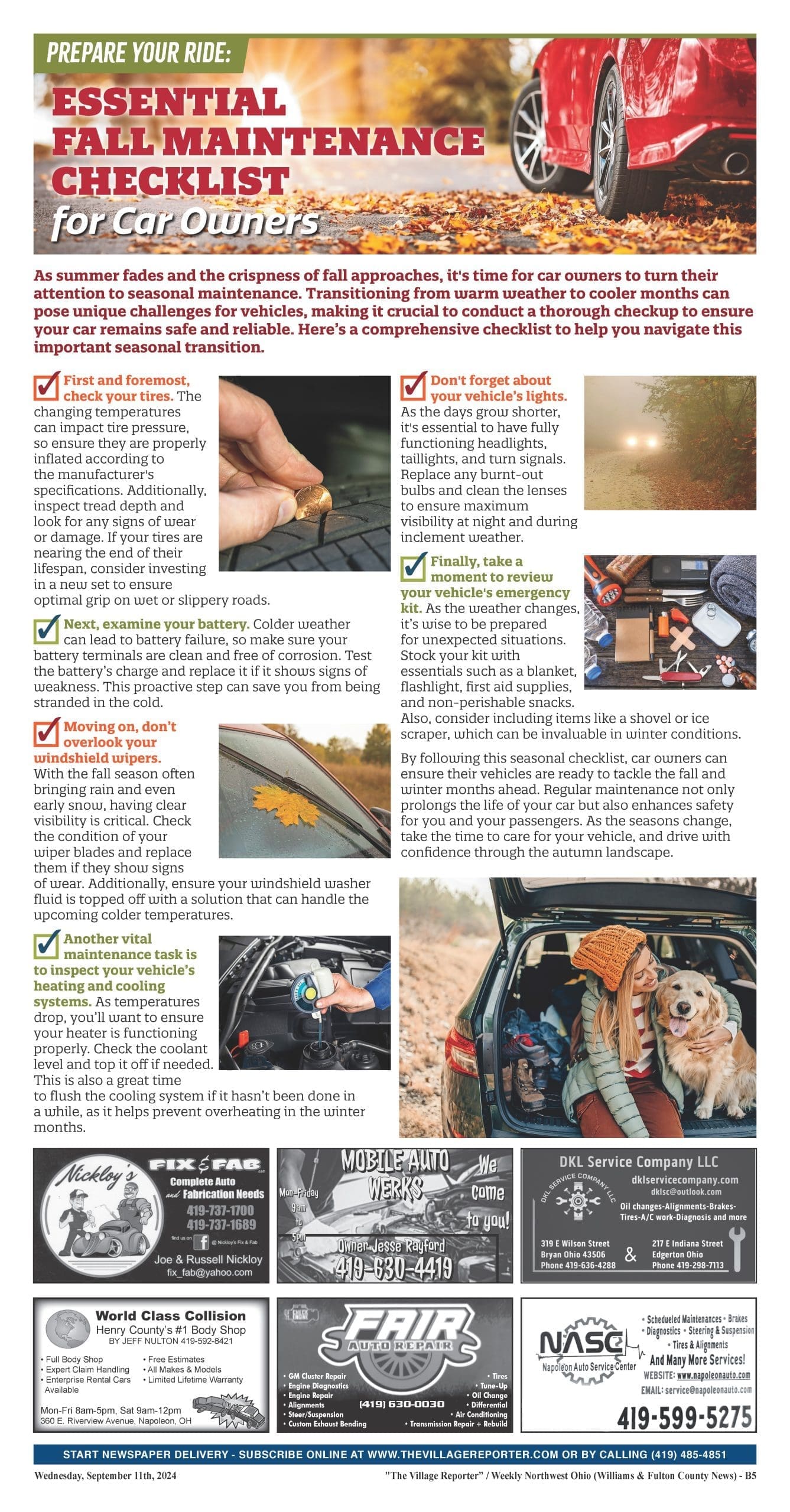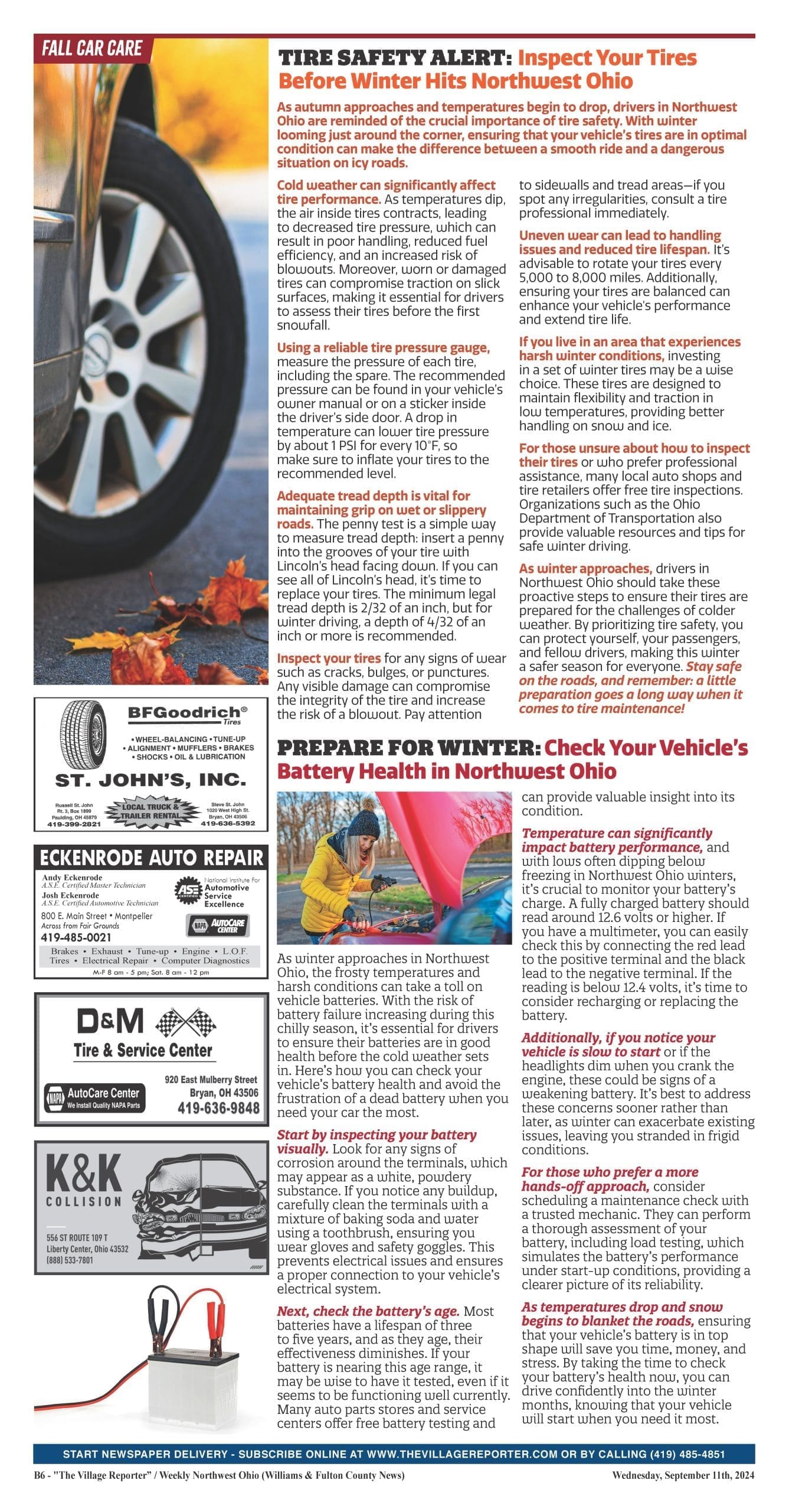 Preparing your vehicle for cooler northwest Ohio weather in the fall is crucial to ensure safety, improve performance, and enhance fuel efficiency, preventing breakdowns in harsh conditions. See these local businesses to assist your needs.