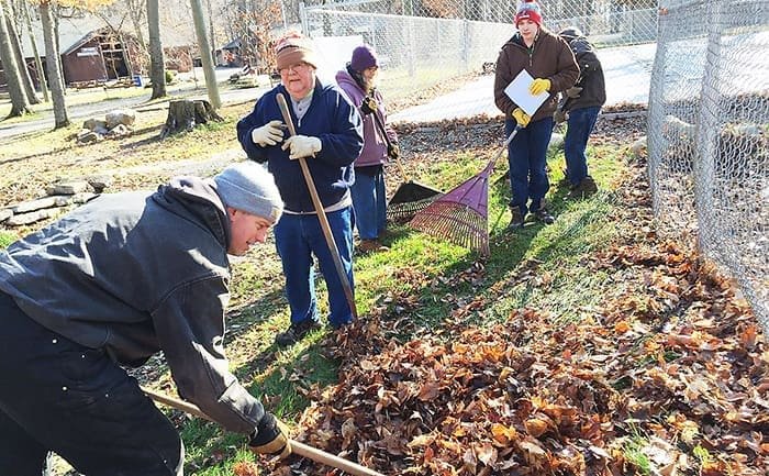 Some of our main projects will include leaf raking, picking up sticks, mulching trails, and removing pool cover at 10:00 a.m.