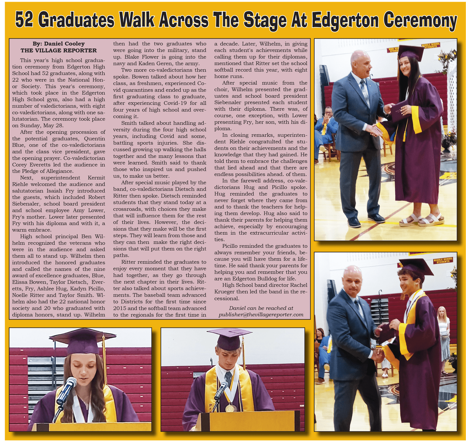 This year’s high school graduation ceremony from Edgerton High School had 52 graduates, along with 22 who were in the National Honor Society.