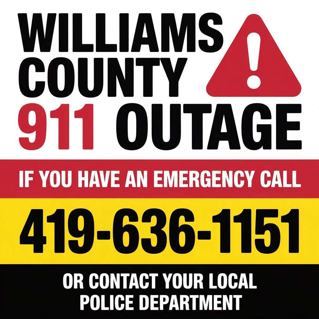 Williams County, Ohio — Williams County 911 is currently experiencing an outage that is affecting all incoming 911 calls. The issue has been identified as a routing failure with Frontier, which is preventing emergency calls from being delivered to the Williams County Dispatch Center.