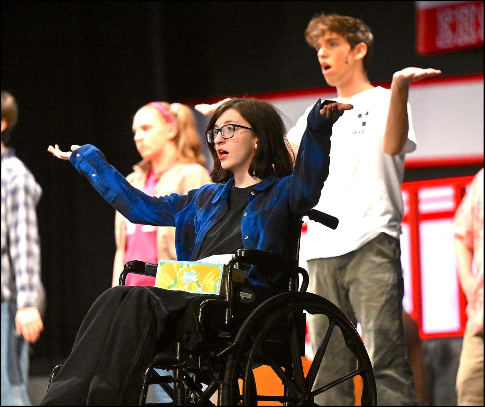 As the story progresses, we also meet Troy’s best friend, Chad Denforth (Josef Durbin), Gabriella’s friend, Taylor McKessie (Lilly Cox), who is the academic team captain who needs Gabriella to win the championship for their team, Kelsi Nielsen (Mya Parker), a shy, but talented songwriter who wrote the musical, and Zeke Baylor (Chris Avell), another teammate of Troy who develops a secret crush on Sharpay.