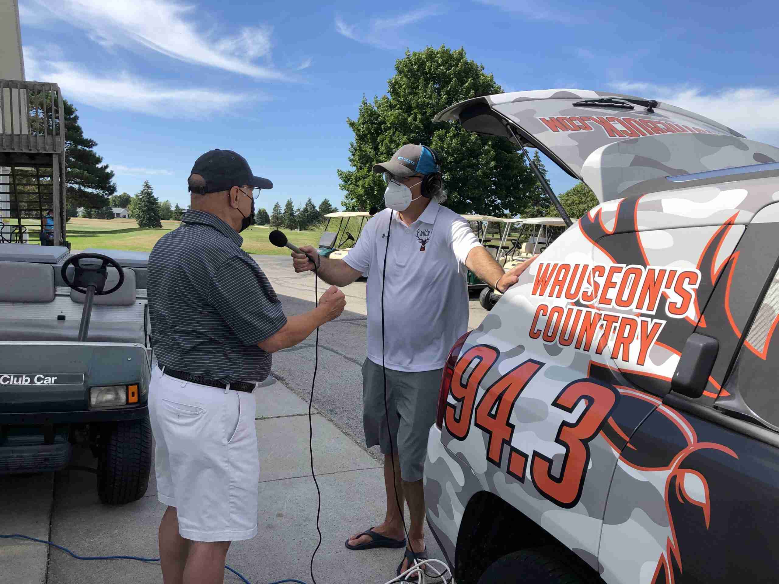 Greetings, purchasing drinks in the club house, and hauling their golf clubs to their assigned carts were all part of the opening time. Max Smith was there and interviewed Chamber Executive Director Bill Drummer live about an hour before the beginning, for 94.3 The Buck.