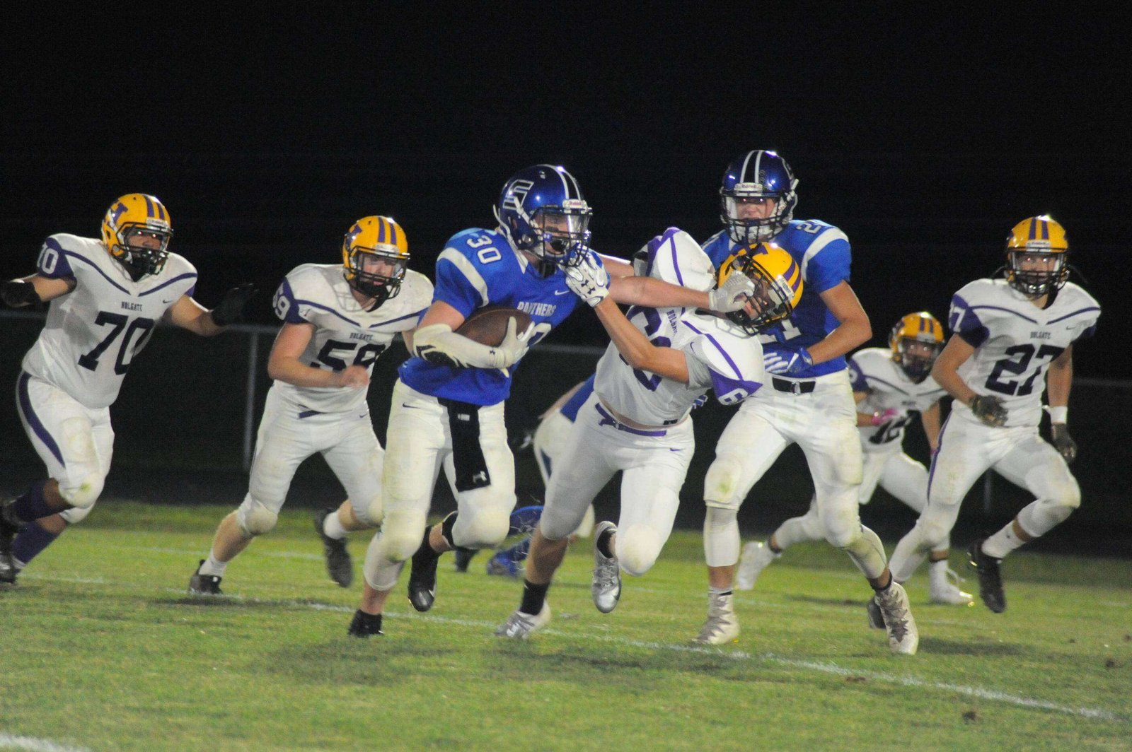 Once again there was nobody home when the corner was turned, and the runner was knocked out of bounds at the Stryker 35. Junior Max Wonders busted up a pass play. On third down, Holgate went to the air again, but junior Noah Huffman plastered the Holgate quarterback, forcing the pass to fall incomplete.