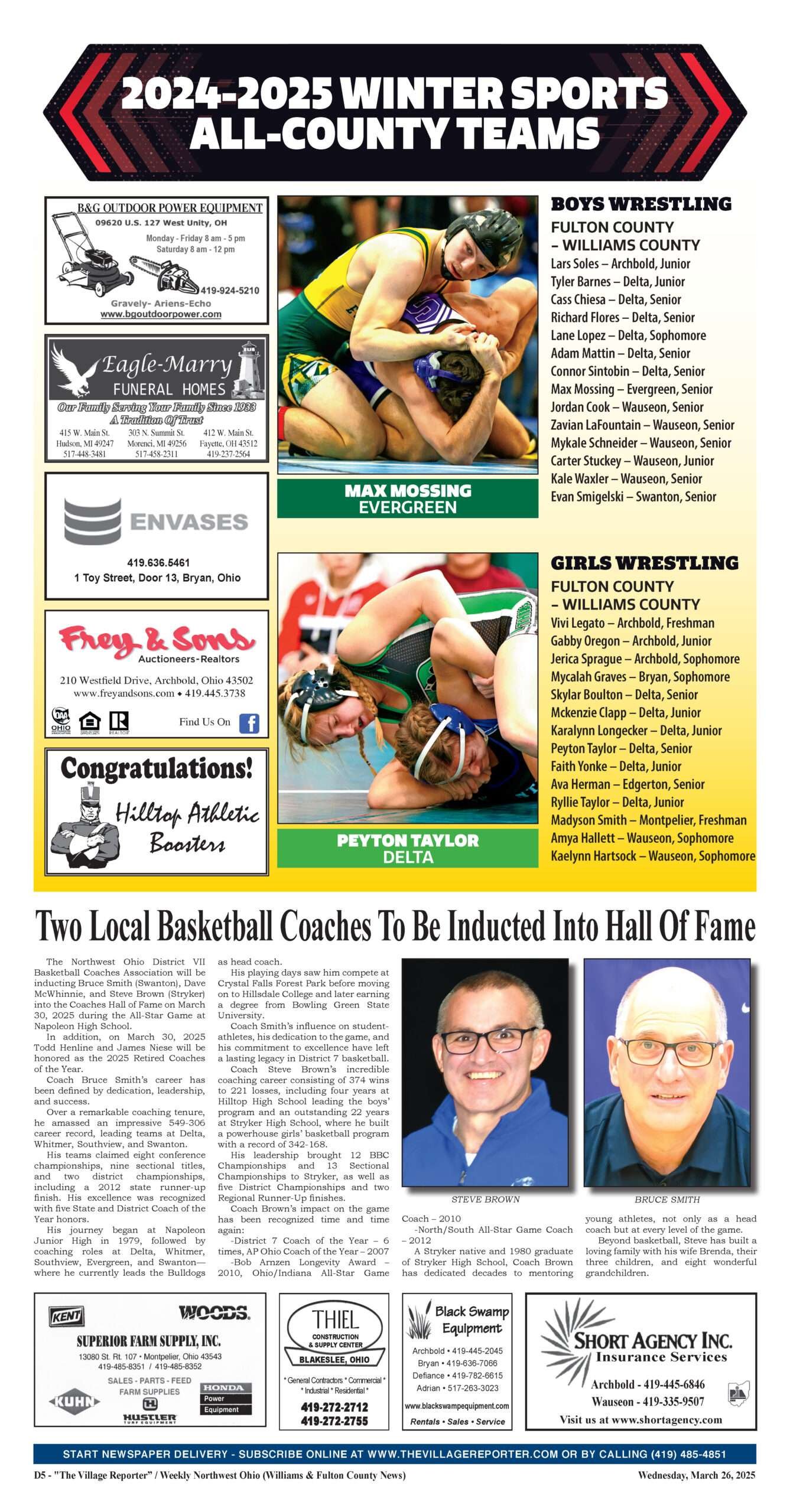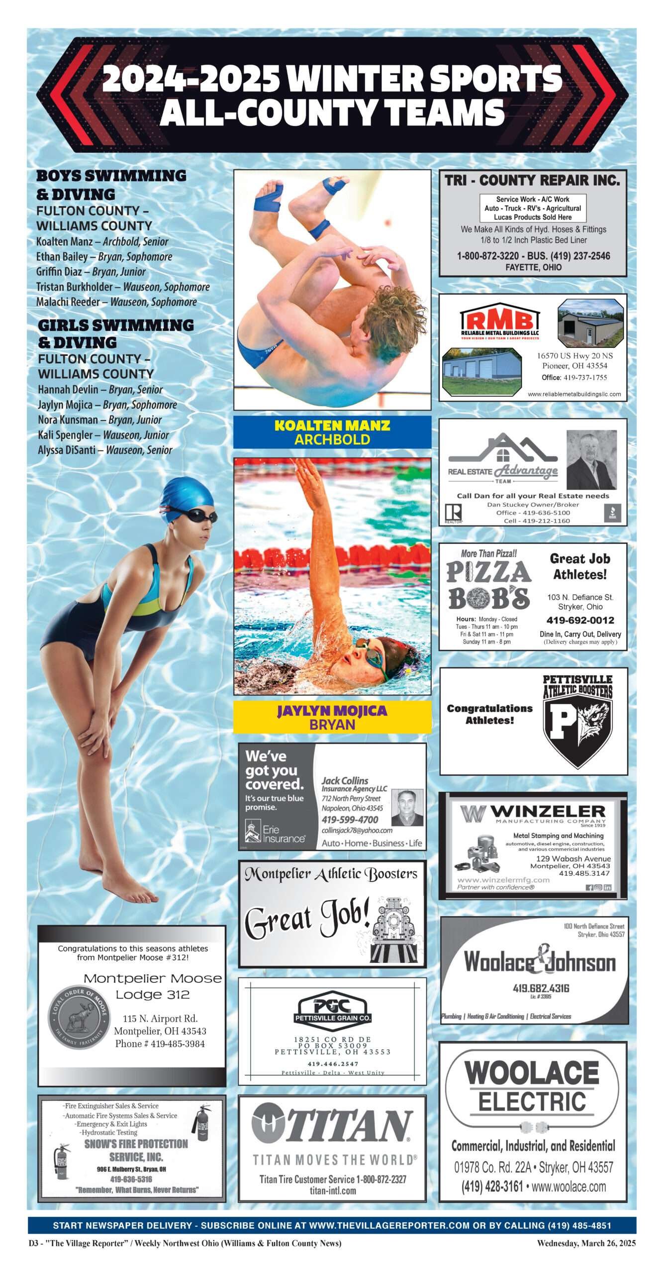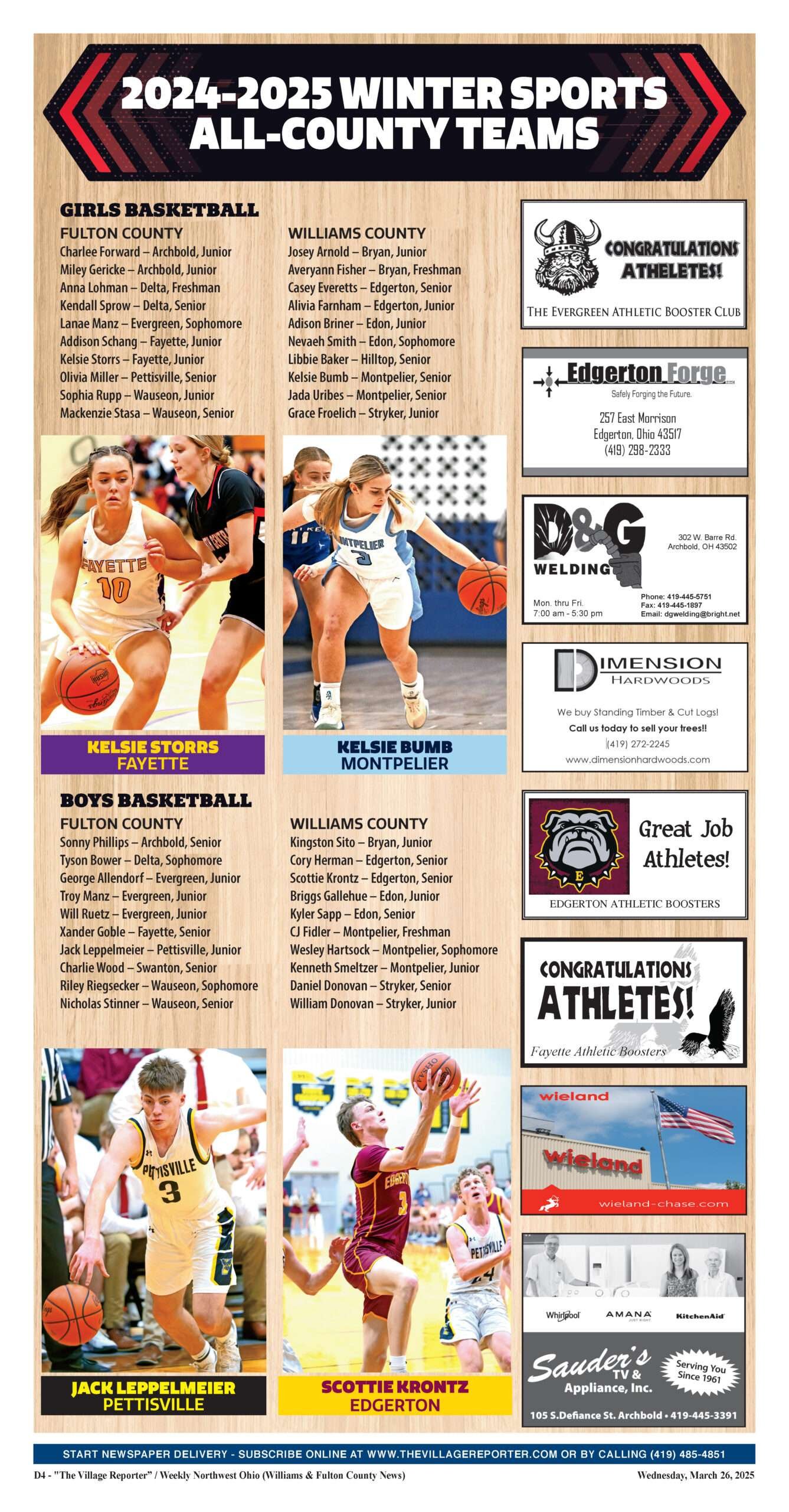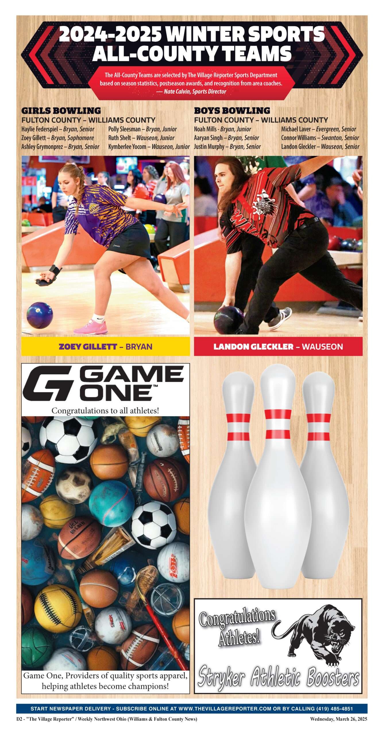The All-County Teams are selected by The Village Reporter Sports Department based on season statistics, postseason awards, and recognition from area coaches.