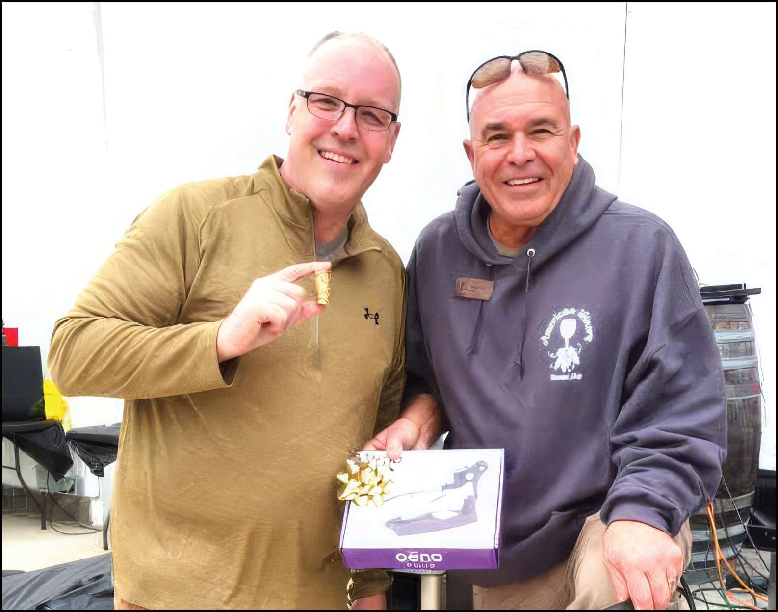 CORK HUNT … Winner of the Golden Cork, Chris Dowd with American Winery owner, Tom Shank.