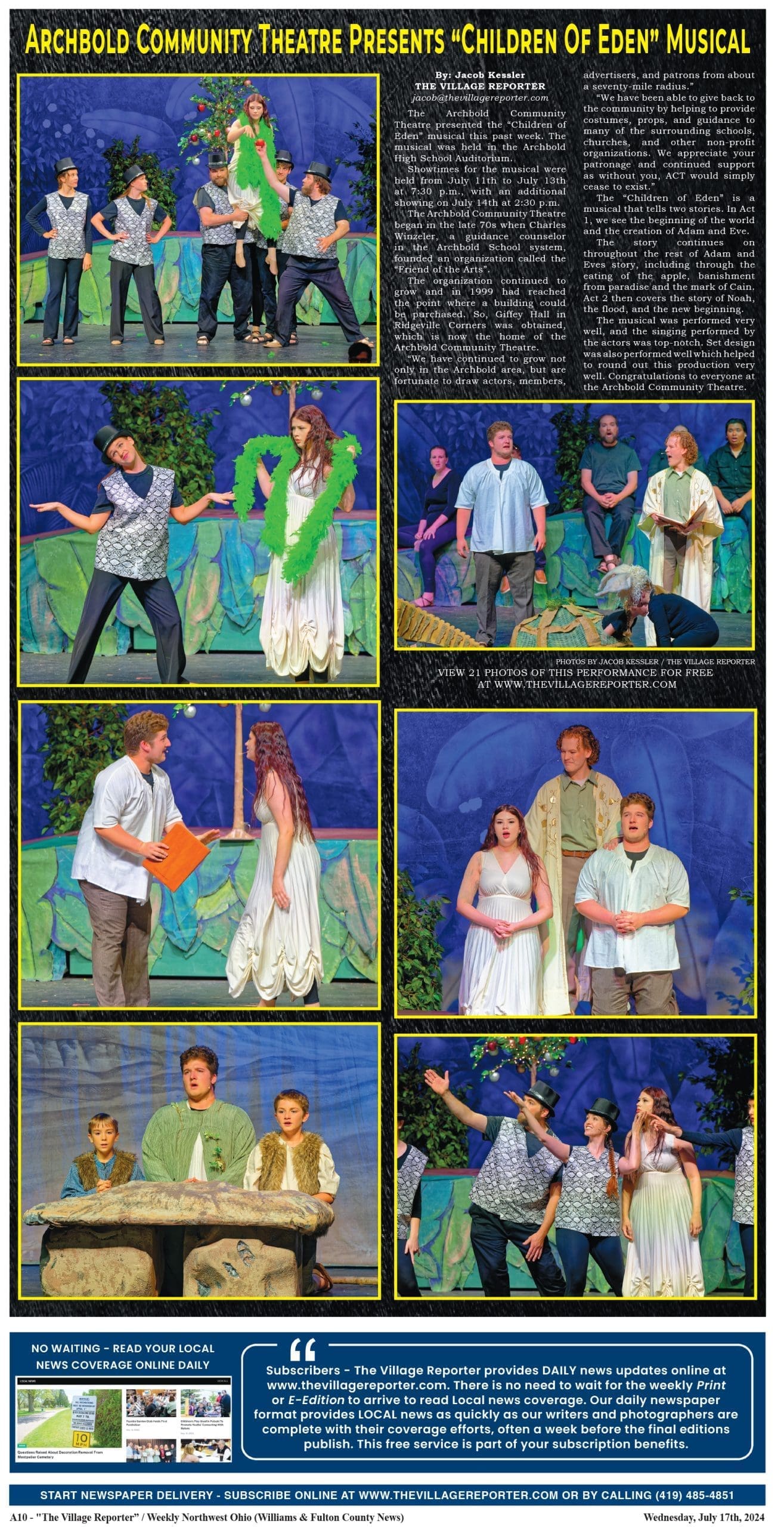 The Archbold Community Theatre presented the “Children of Eden” musical this past week. The musical was held in the Archbold High School Auditorium.