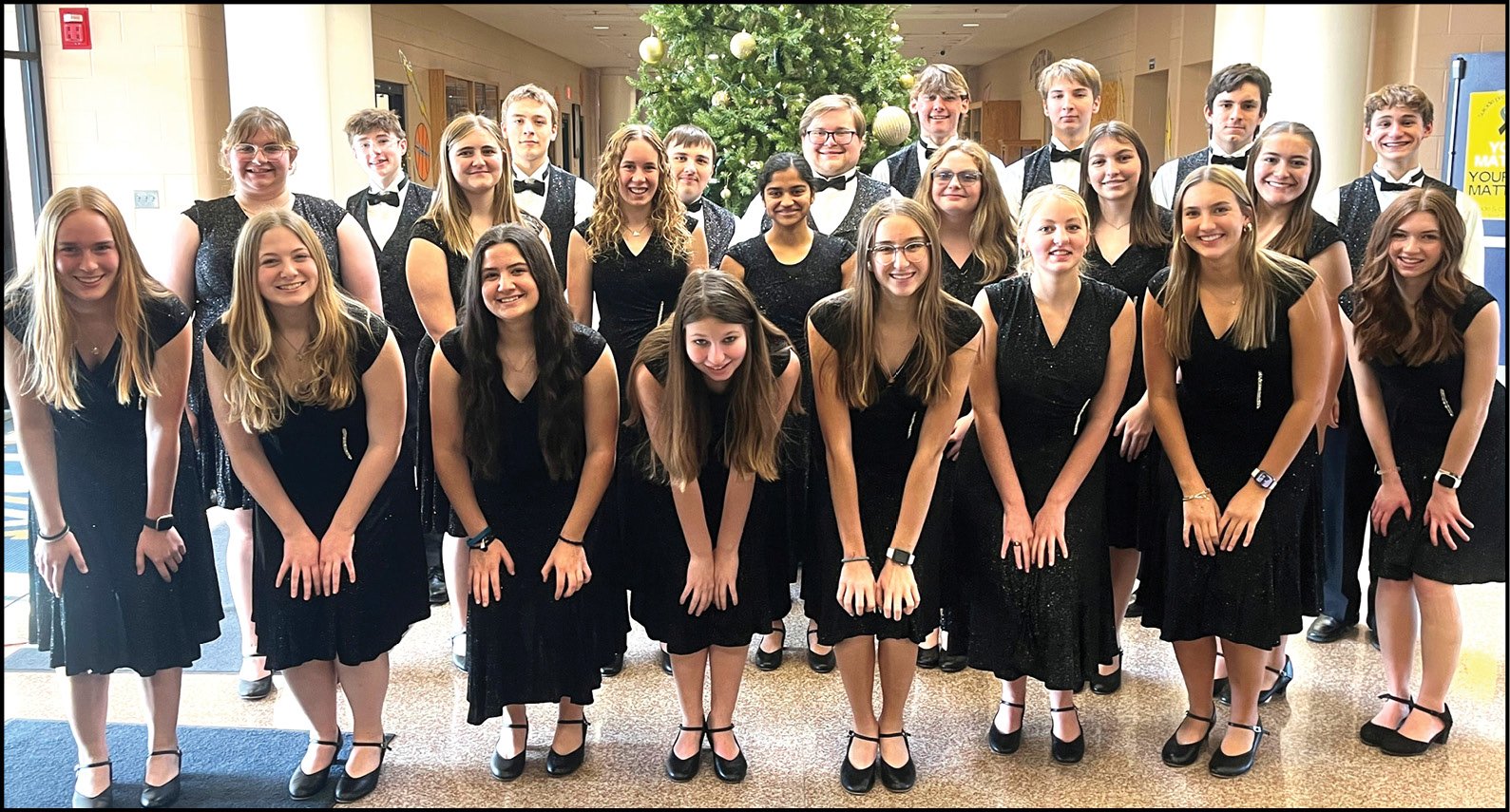 FESTIVE SONGS … Archbold Rotary held its annual Christmas luncheon for members and guests in the Little Theatre of Sauder Village’s 1920’s Main Street on Friday, December 13 with entertainment provided by The Company from Archbold High School. Members of The Company are front row from left: Janae Murillo, Estella Martin, Kennedy Kruse, Raegan Rutledge, Jade Whitacre, Molly Rutledge, Julisa Nafziger and Kirsten Delong. Second row from left: Augusta Martin, Kira Murillo, Tessa Nafziger, Elizabeth Francis, McKenzie Riter, Tessa Seibert and Ariah Bagrowski. Back row from left: Trevor Osterland, Gabe Hudson, Gavin Miller, Joshua Reeb, Carter Kruse, Luke Ward, Michael Funnell and Bo King. The Company is directed by Courtney Grisier and accompanied by Adam Grisier.