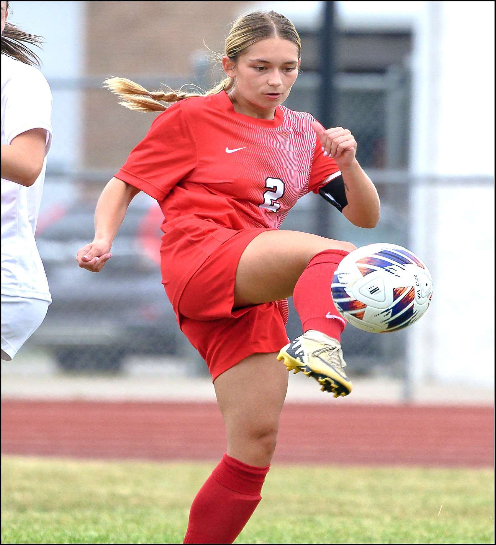 FANCY FOOTWORK … Wauseon senior Brianna Woodruff tries to control the ball while surrounded by Archbold defenders.