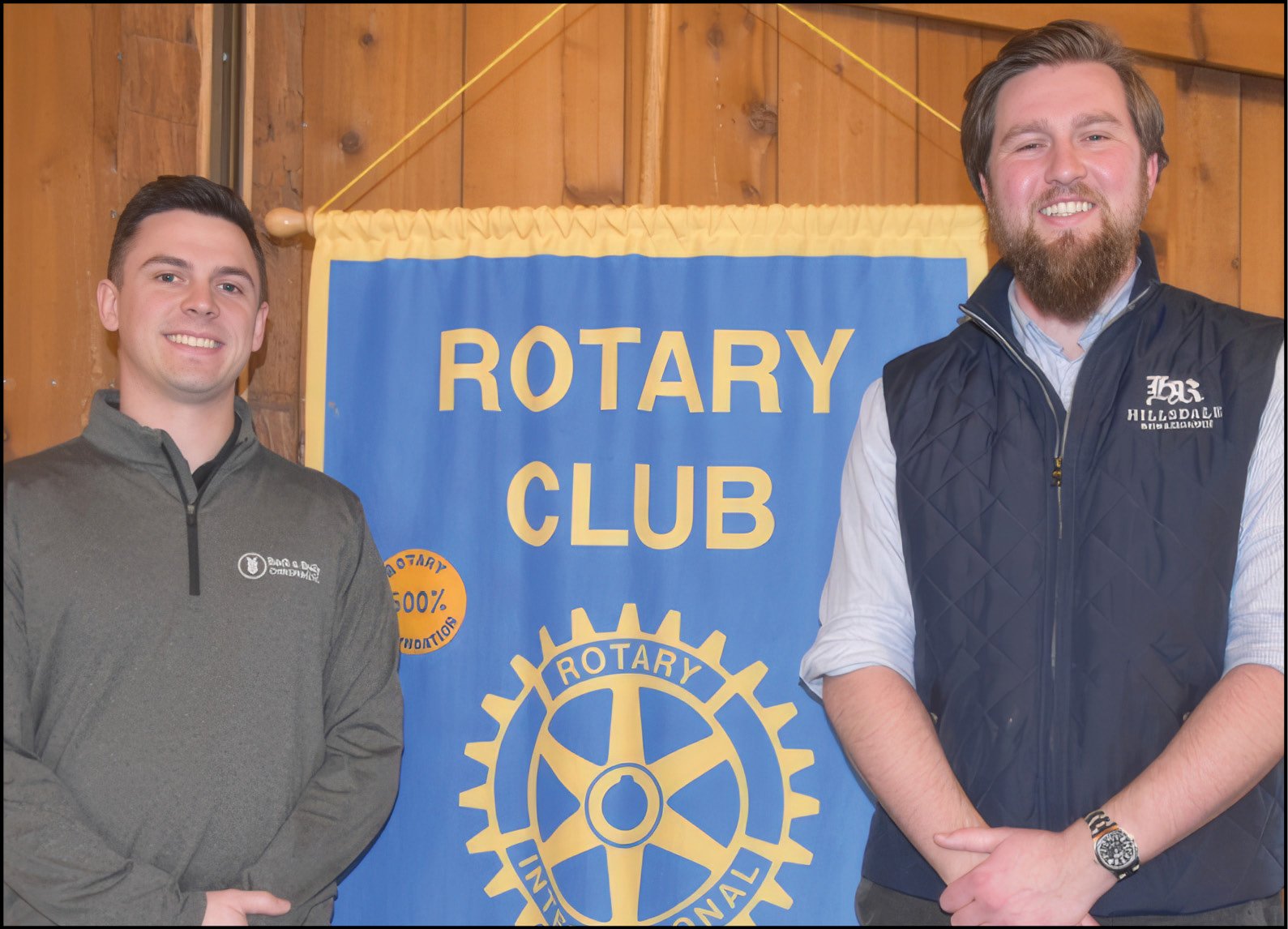 DOWNTOWN HILLSDALE PLANS … Luke Robson (right), founder and president of Hillsdale Renaissance LLC, recently told Archbold Rotarians about his plan for revitalizing the downtown of Hillsdale, Michigan, his adopted hometown, after decades of decline. The program was arranged by Levi Wyse (left).