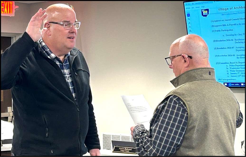 On Monday, January 19, 2026, the Archbold Village Council met for a double meeting with all members in attendance, including Gary Dominique, Mike Evans, Kevin Eicher, Aaron Babcock, Chad Kern and Karla Ball. Also on hand were Mayor Brad Grime, Village Administrator Aaron Alt and Council Clerk Cassie Storrer.