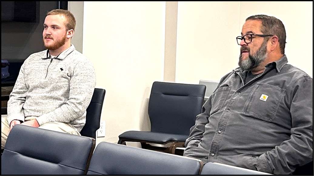 EMPLOYEE RECOGNITION … Wastewater Department Superintendent Mike Short (right) recognized Mason Siegel (left) for obtaining the OEPA Class III Wastewater Operator certification.