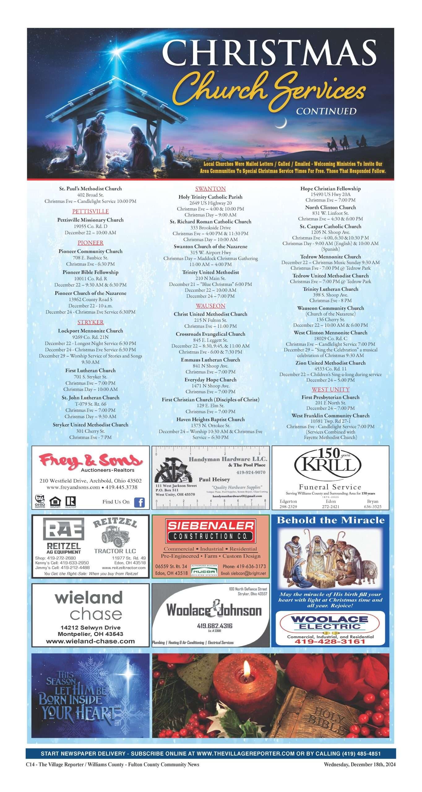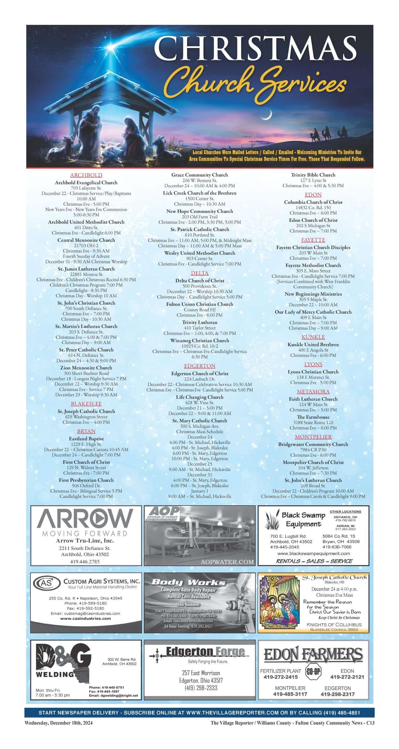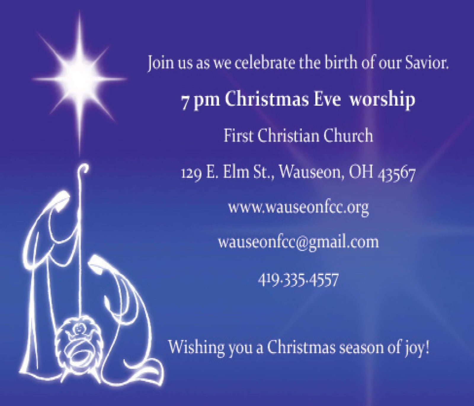 Area churches from the Williams County – Fulton County areas of Northwest Ohio were mailed letters, emailed, and called to obtain special Christmas Service times and dates allowing the opportunity to invite our readers to services (for free). Those ministries who responded to our invitation appear below.