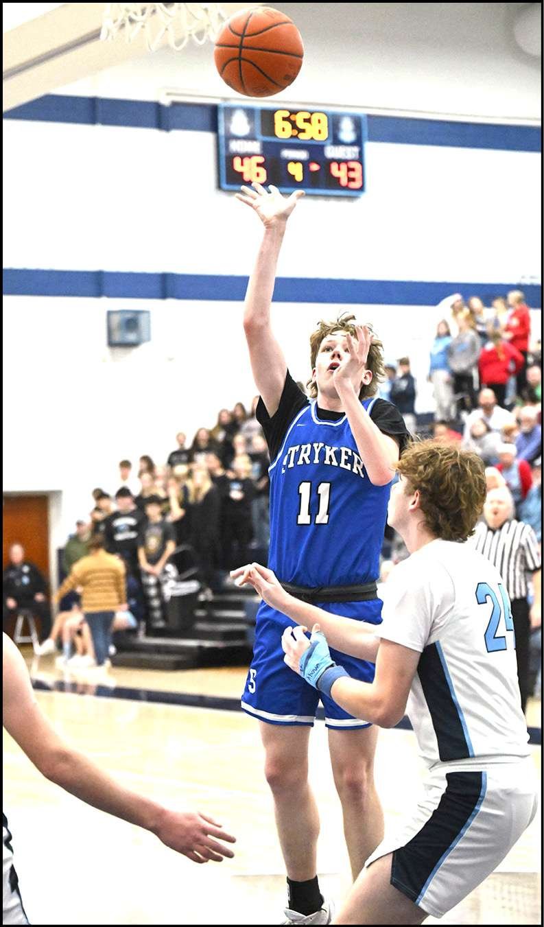 BBC CLASH … Stryker’s Eli Capps attempts a shot in the fourth quarter at Montpelier High School.