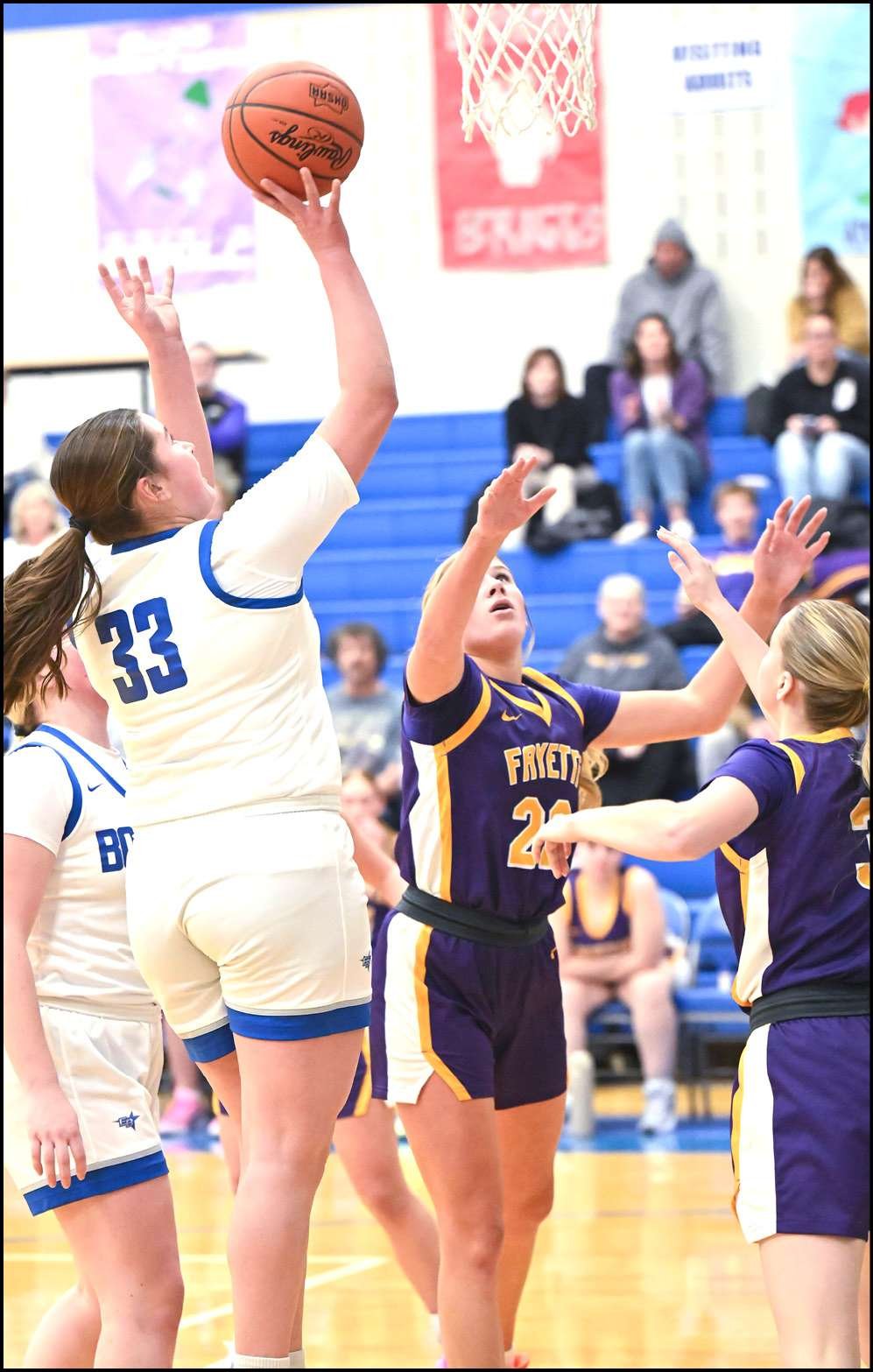 A pair of free tosses by Edon’s Adison Briner stopped the 10-0 Fayette surge before a basket by Mesa Gorsuch and another steal and layup by Schang gave Fayette a 24-12 lead with 4:46 left in the first half.