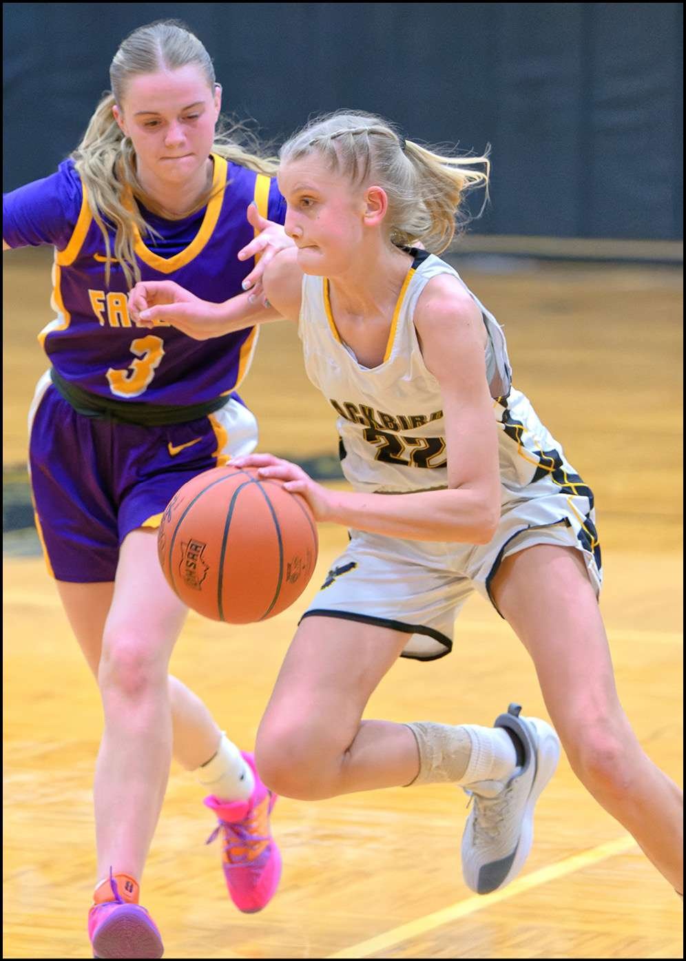 LADY BLACKBIRD … Madison Miller looks to drive past a defender in last Friday’s BBC home game with Fayette.