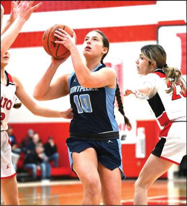 Zoe Uribes converted a three-point play from the low square followed by a layup and then Kelsie Bumb buried a three ball from the left wing to put Montpelier up 12-4.