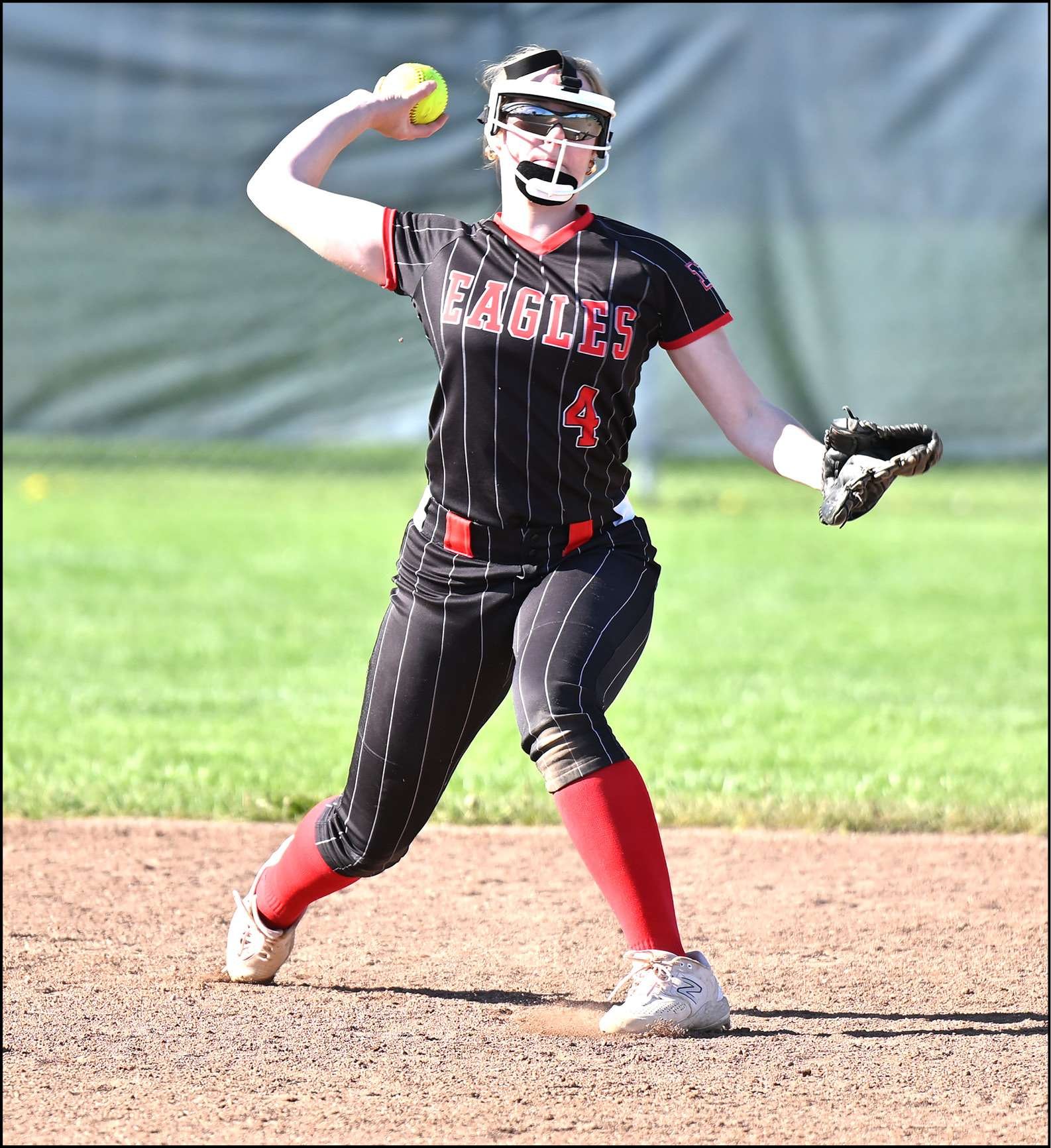 BBC SOFTBALL … North Central shortstop Emmi Hollstein makes the throw to first base during the Eagles BBC contest at Montpelier