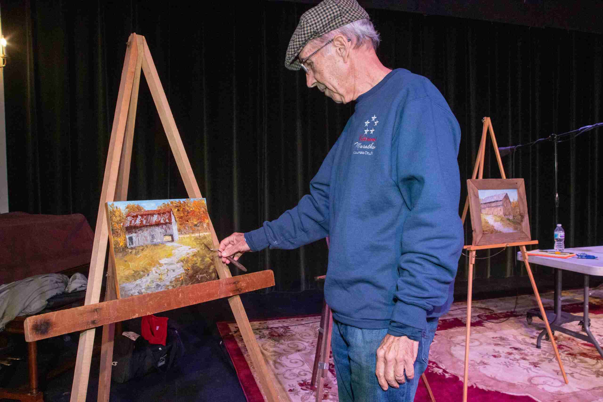 ARTIST AT WORK… Robert F. Kroeger paints a picture of the Rininger Barn in Hillsdale Michigan. (PHOTO BY JACOB KESSLER, STAFF)