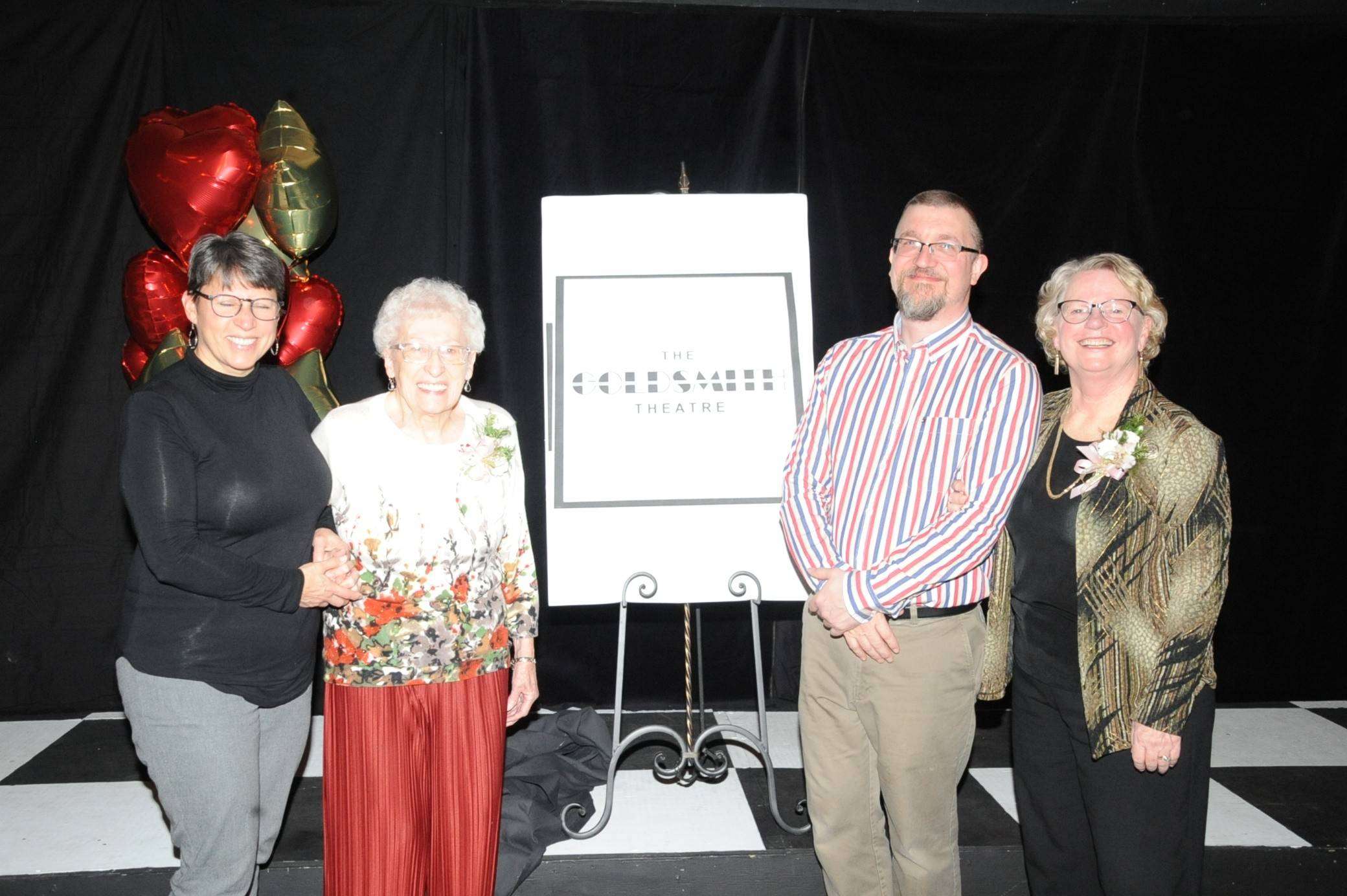 Before the unveiling of the new sign depicting the new name, Cecil’s theater life was recounted by several friends and especially by his widow Shirley Goldsmith. Stories, memories, laughs and applause echoed in the little theater. Even though she is no longer on stage, Shirley is still very much a part of the little theater family today.