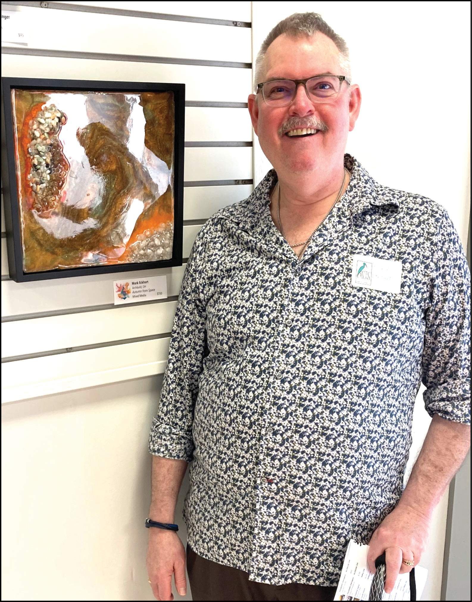 MIXED MEDIA … Mark Eckhart of Archbold (above) shows his mixed media exhibit, “Autumn from Space,” at the first annual Autumn Exhibit at the Black Swamp Art Center in Archbold.