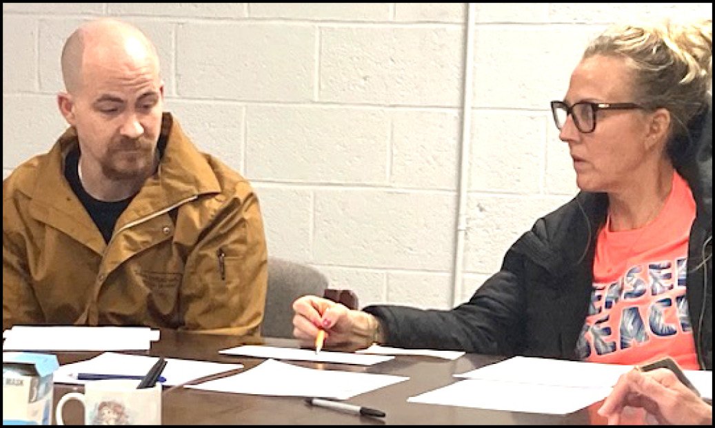 MITIGATION DISCUSSION … Blakeslee Mayor Eric Jenkins (left) and Fiscal Officer Courtny Osborn (right) discuss the countywide mitigation plan at the village council meeting held on Wednesday, February 4.