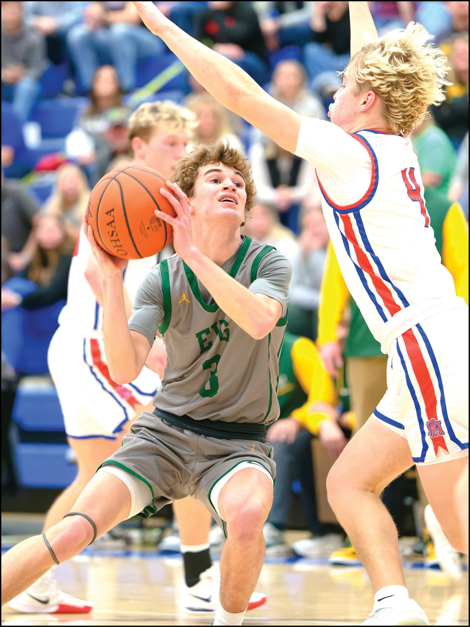 Evergreen came back as Manz drained a three-pointer from the corner and then found Quinn Eisel for a layup to slice the lead to 39-36. However, Lane Jackson hit a long triple to push the margin to 44-36 entering the fourth.