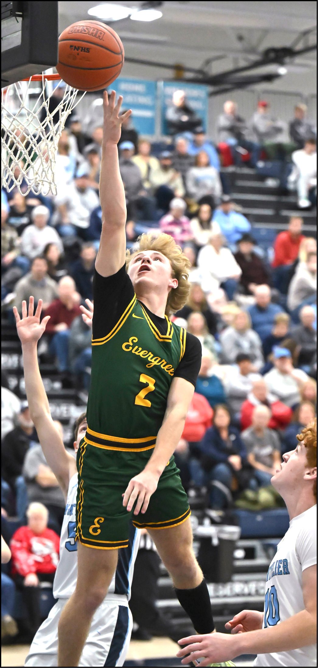 FAST BREAK … Evergreen’s Will Ruetz glides to the hoop on a fast break.