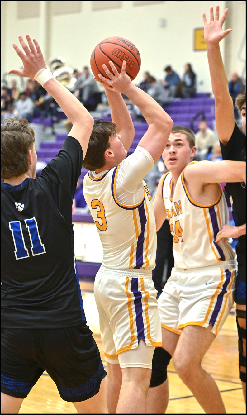 WILLIAMS COUNTY HOOPS … Bryce Welling puts up a shot for the Golden Bears in the lane against the Stryker defense.