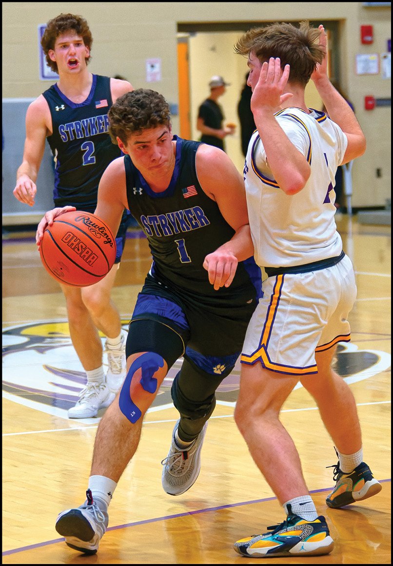 DRIBBLE DRIVE … Stryker’s William Donovan makes a move down the lane against a Fayette defender. VIEW 83 PHOTOS OF THIS CONTEST FOR FREE AT WWW.THEVILLAGEREPORTER.COM