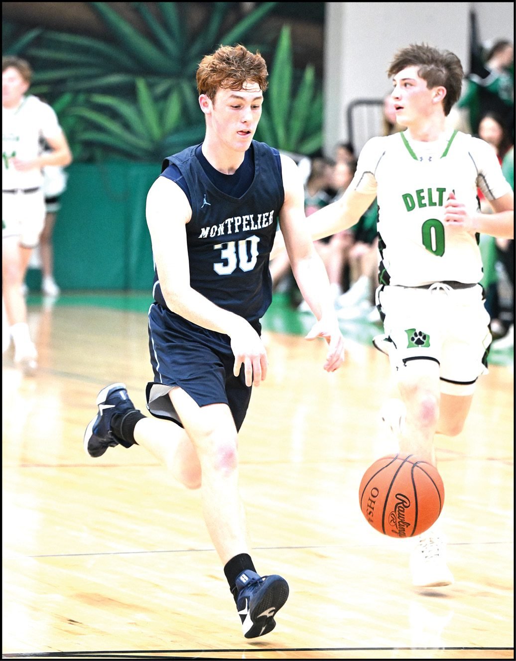 OPEN COURT … Montpelier’s Kenneth Smeltzer breaks into the open court ahead of the Delta defense.