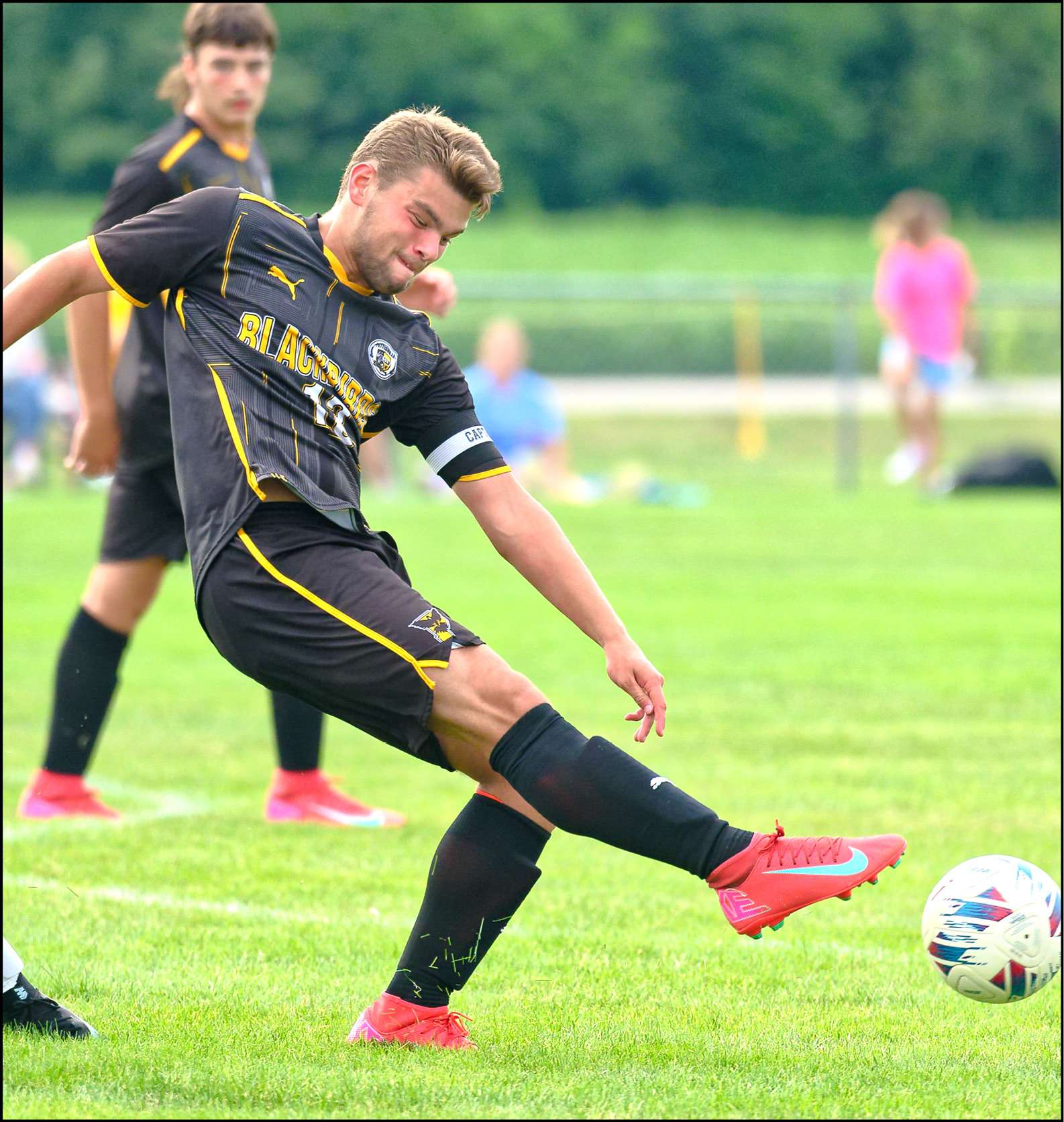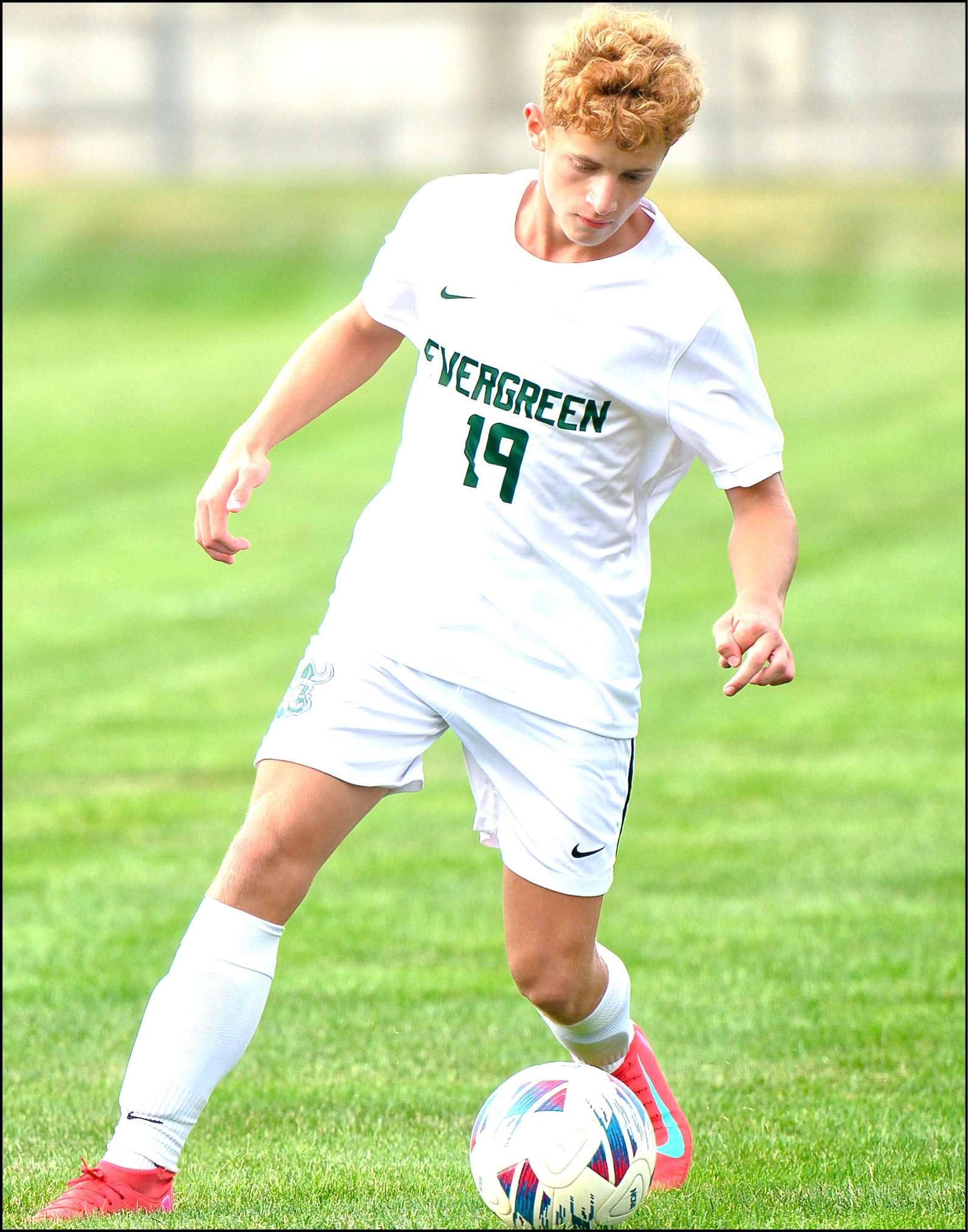 NONLEAGUE SOCCER … Pettisville’s Josh Morris clears the ball out of traffic in last Thursday nonleague match with Evergreen.