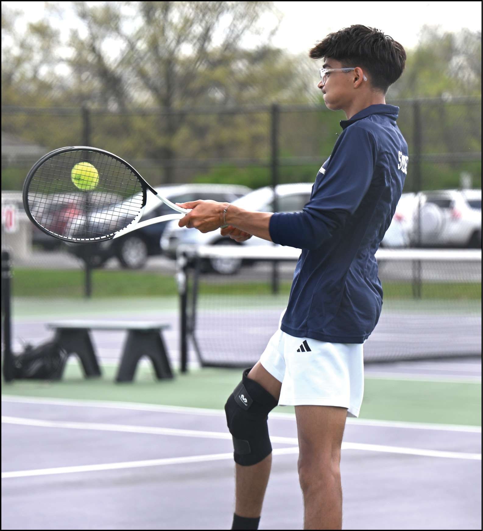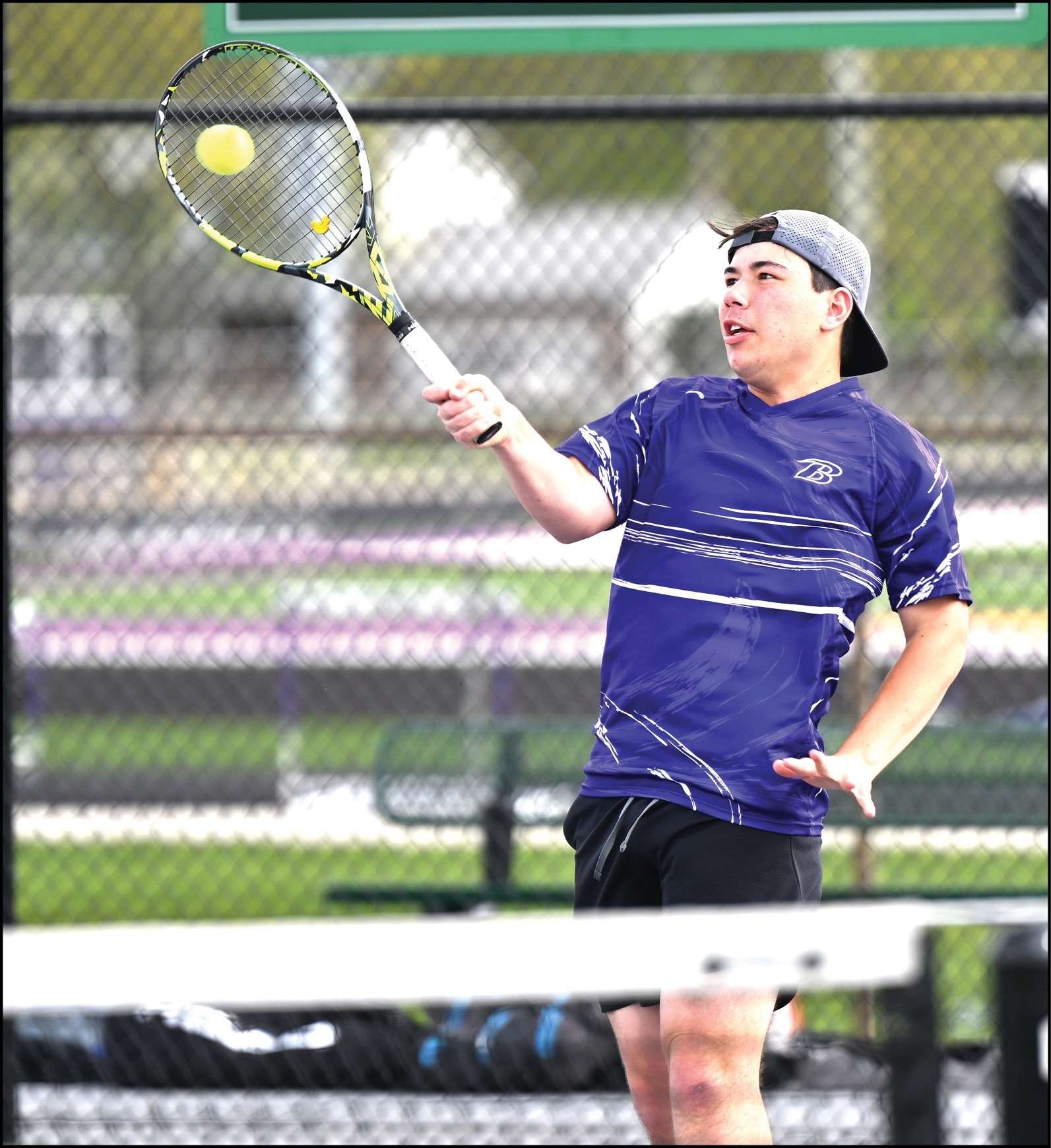 FIRST DOUBLES … Kai Dauber (pictured) and Jaydan Deel were 6-4, 6-2 winners over the first doubles team from Archbold.