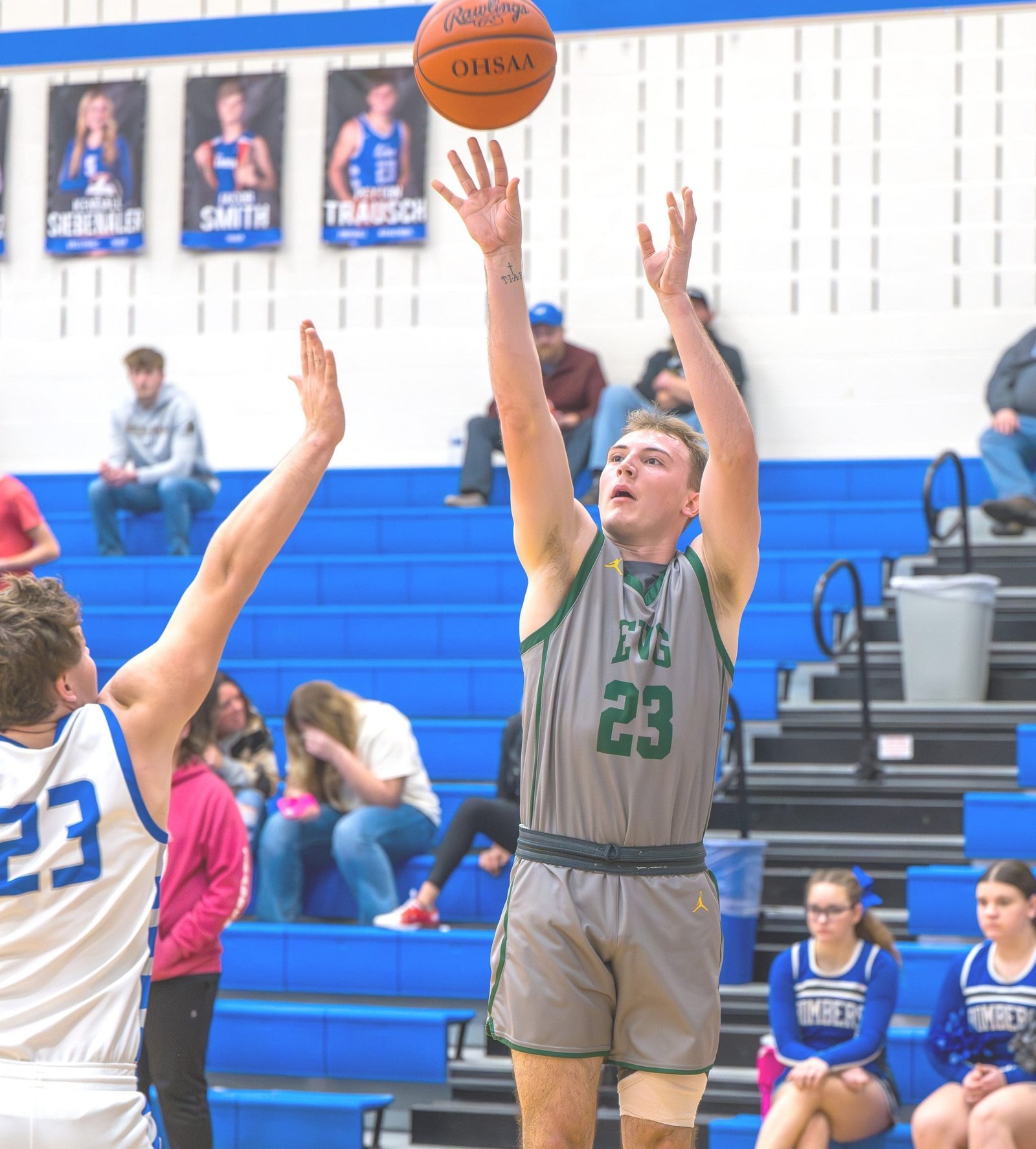 High flying Tyson Woodring converted Eli Keifer’s lob for the first Evergreen field goal with 2:10 left to start a long barrage of Viking points.