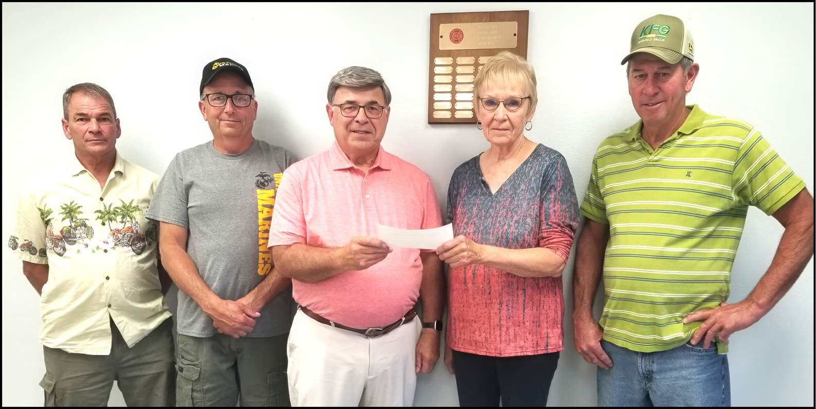 FUNDS FOR PHASE THREE … The Millcreek-West Unity Foundation awarded an $8,000 grant to Brady Township for phase three of Rings Cemetery improvements. Started in June 2023, the community group “Respect the Past” has been using funds to clean and repair tombstones in a nonactive graveyard, home to many veterans. With funding from the State of Ohio discontinued due to the cemetery’s inactive status, this grant will allow the group to continue its work and pay for supplies and contract labor to dig and set footers, and refurbish, restore, and purchase plaques to honor these heroes. Pictured left to right during the check presentation are Brady Township Trustees Jim Eisel and Willie Grime, Millcreek-West Unity Foundation Board Member Lew Hilkert, Rings Cemetery Coordinator Marilyn Royal, and Brady Township Trustee Tim Nofziger.
