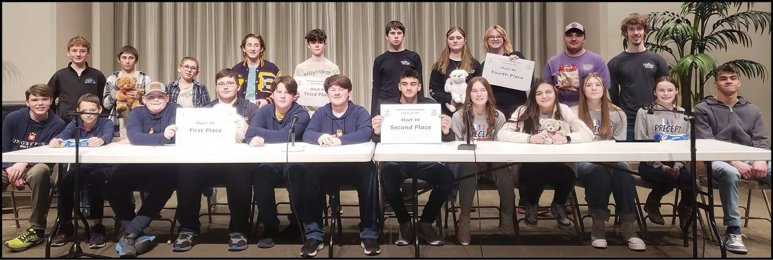 Second, North Clinton’s Vultures (9-9-1), had won the February 2 meet, and the third team is Central’s Tongues of Fire (8-8-2). All six churches now have a team in the top six places.