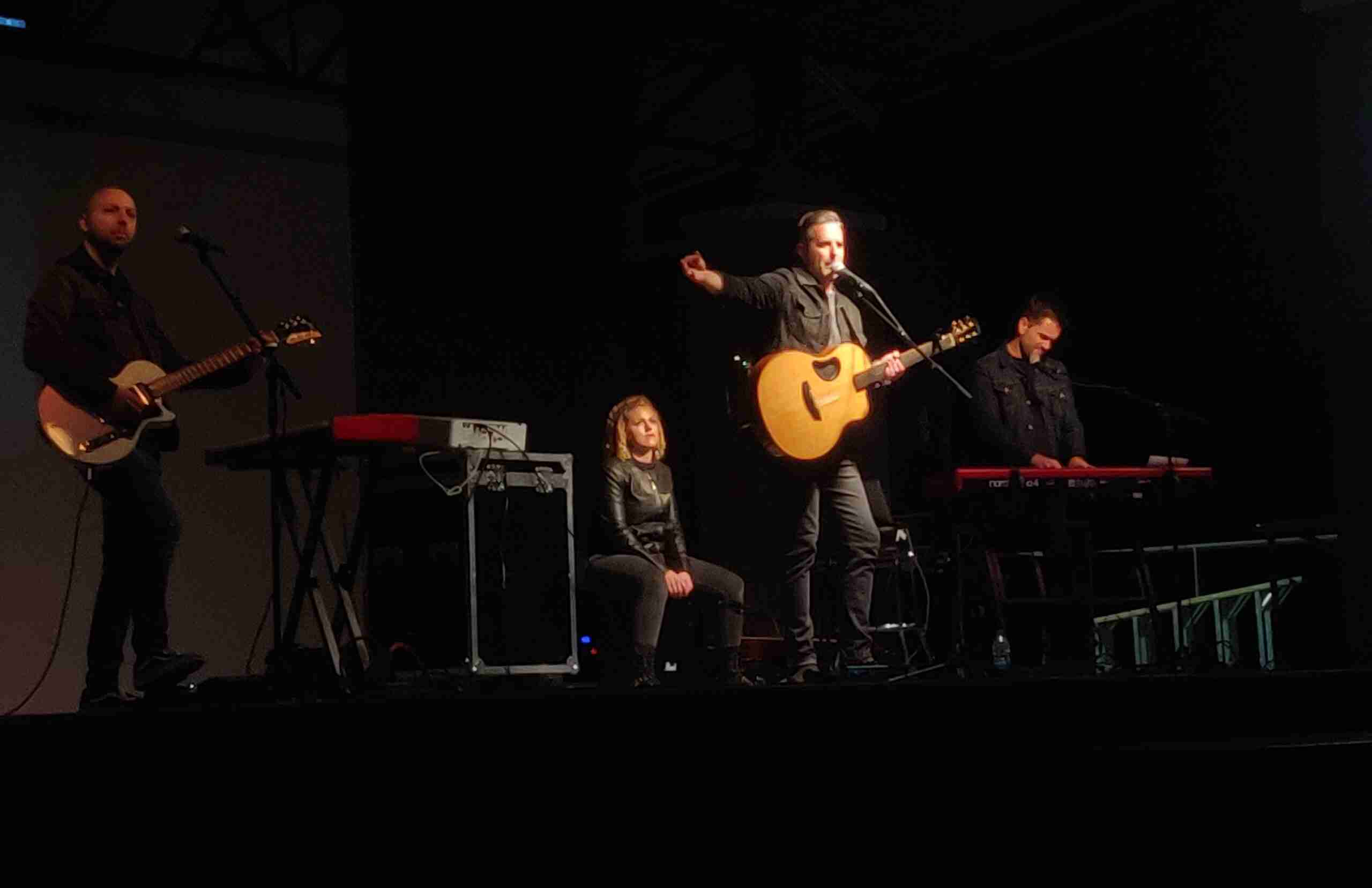 FIRST AMPHITHEATER EVENT … A good crowd turned out for the Matt Hammitt Concert on Saturday night, October 17, at the brand new amphitheater next to Imagination Station in Bryan. Hammitt who was the lead singer for Sanctus Real for 20 years, was brought to Bryan as a gift for the community from the Bard Family. He is now a solo artist and told the crowd it felt so good to be doing a live concert again, as this was his first one since the pandemic began. A highlight of the evening was when his 10 year old son, Bowen, sang a song that he wrote. Northwest Ohio musicians accompanied Hammitt, (from left to right) Mike Biddle, Ashley Spitler, Hammitt in the spotlight, and Seth Huff. (PHOTO COURTESY OF STEPHEN MILLER)