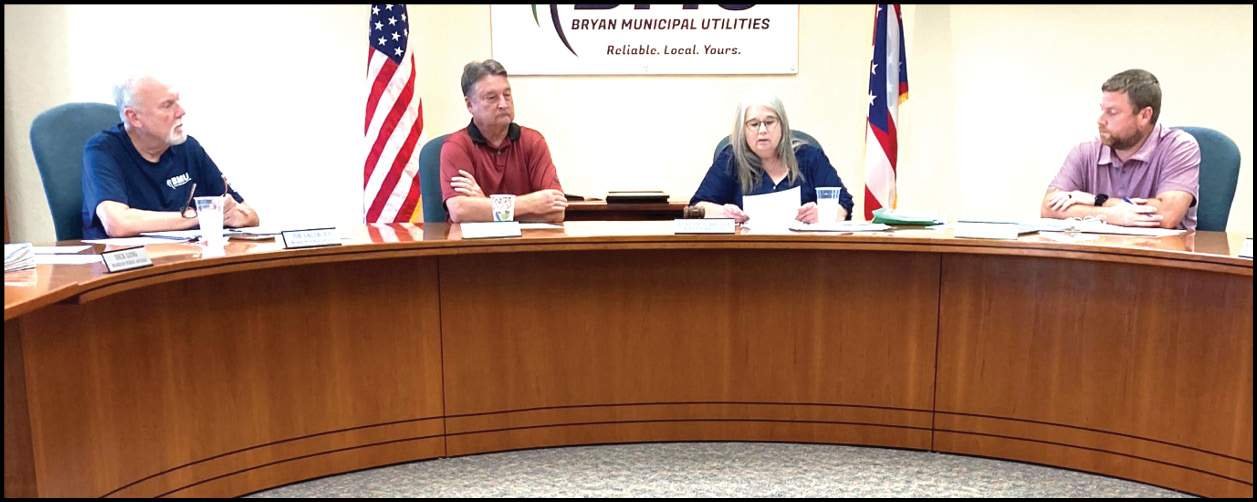BPA FUTURE … Bryan Board of Public Affairs Chairman, Annette Schreiner (middle), speaks about the proposed charter amendment to abolish the BPA at its Tuesday, September 30 meeting with board members Jim Salsbury (far left), Bob Eyre (second left), and director of utilities, Derek Schultz (right), looking on.
