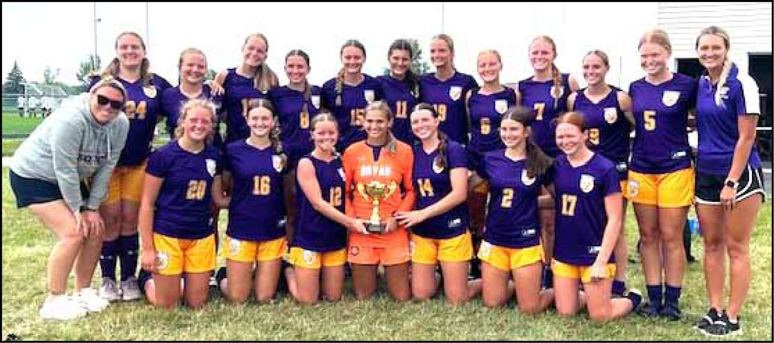 COLLECTING HARDWARE … The Bryan High School soccer teams played in the 795 Cup Tournament in Genoa recently and both teams came home D1 Champions! There were 18 high school girls teams and 28 high school boys teams. The boys won the final game in a shoot-out with goalkeeper Jess Hendricks blocking the final shot to win the game! Boys team (top): Front – Hunter Smith, Bryce Welling, Carter Altaffer, Max Burton, Andrew Slagle, Eric Koenig, Alex Diaz, and Cooper Clarke. Back – Assistant Coach Cole Andres, Coach Luke Collins, Jacob Burnett, Theo Luthy, Griffin Boehm, Connor Thiel, Josue Arrizon, Jack Kennedy, Carter Thiel, Jess Hendricks, Tucker Miller, Collin Rachel, Nolan Sleesman, Carter Luce, Quinn Green, Jeremiah Taylor, Will McCann, and alumni Dom Malanga. Girls team: (above) Front – Sidney Luce, Karli McDade, Ava Zimmerman, Mylie Vollmer, Josey Arnold, Allie Elkins, and Adelyn Hake. Back – Coach Danielle McQuillen, Kori Pinkerton, Grace Rachel, Trinidee Baughman, Breanna Winzeler, Averyann Fisher, Breanna Richmond, Emma Slagle, Cassidy Dietsch, Karlee Green, Piper Hanna, Chloe Wallace and Assistant Coach Delaney Valderas.
