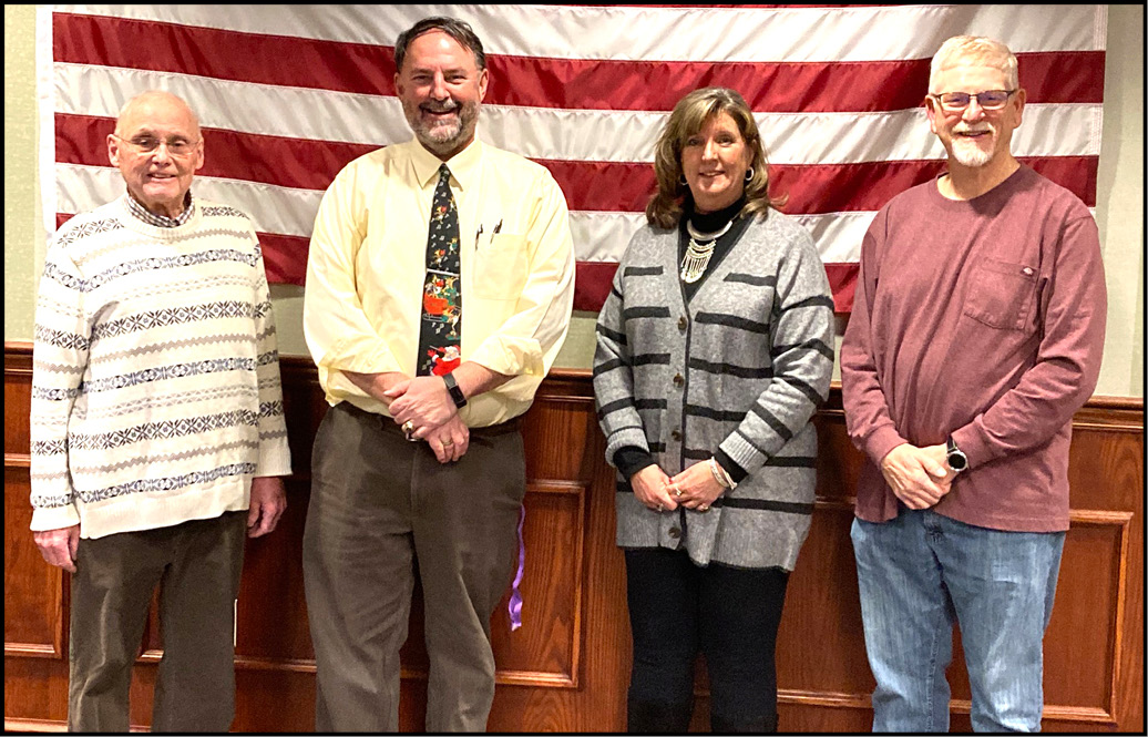 FOUR-YEAR TERMS … Bryan City Council members from left: John Betts, Stephen Alspaugh, Mary Leatherman, and Richard Hupe were officially sworn in to begin new four-year terms by Bryan Mayor Carrie Schlade prior to the council meeting on Monday, December 15.
