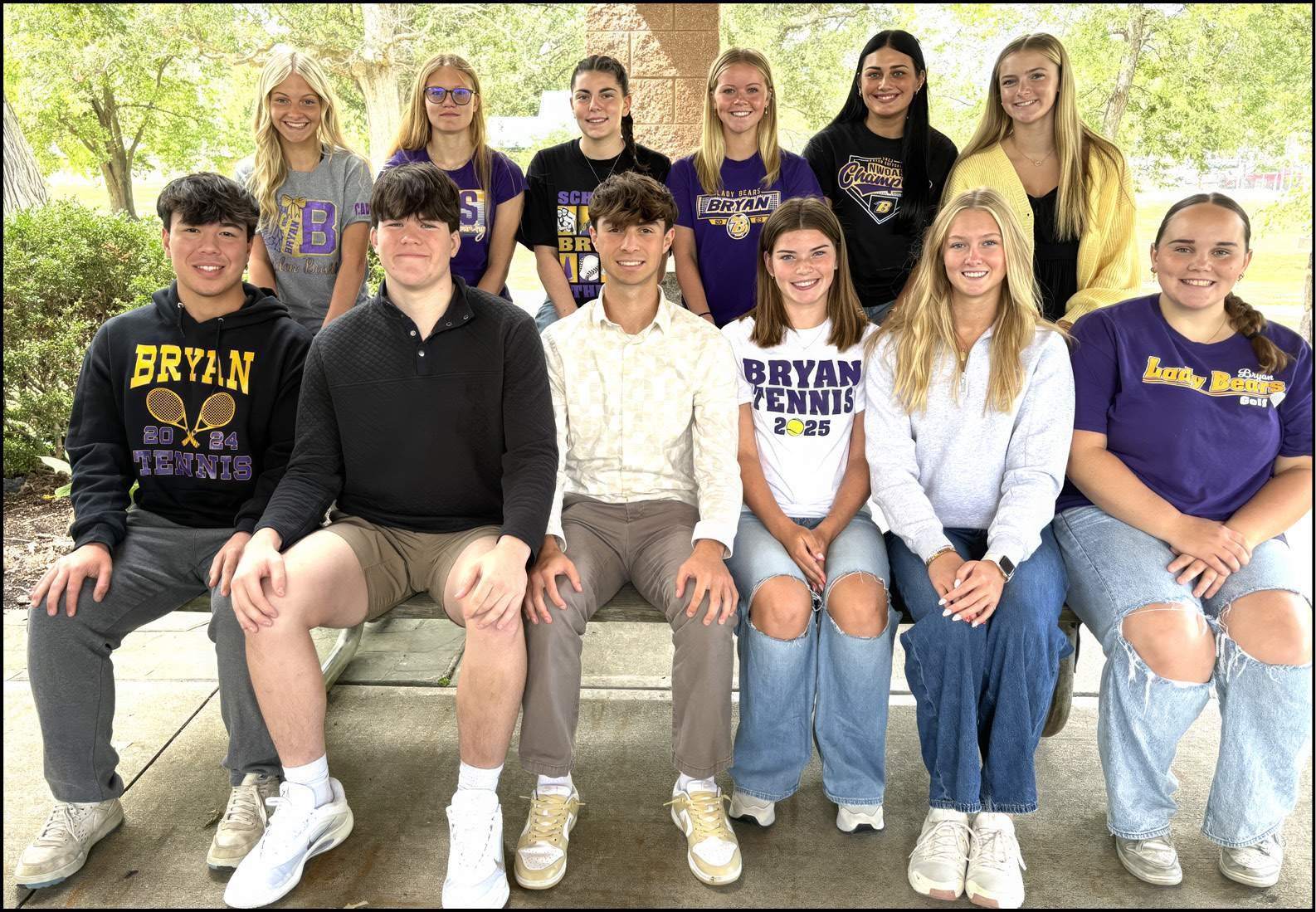 SEASON PROGRESSION … Bryan High School fall athletes and coaches were guests of the Bryan Rotary Club at the Rotary Pavillion in Garver Park. Athletic Director Nathan Keel introduced the coaches who in turn introduced the athletes. Each coach spoke about their expectations how the season is progressing. They are very appreciative of the support from students and the community. Top photo – BHS Fall Coaches: Volleyball – Chelsea Cordy, Cheerleading – Jen Redhead, Football – Scott Staten, Cross Country – Garret Gleckler, Soccer – Danielle McQuillin, Athletic Director – Nathan Keel. Above photo – BHS Fall Athletes: Front Left- Kai Dauber, Logan Carder Jack Kennedy, Emma Elkins, Nora Kunsman, and Kenzie Blevins. Back Left- Morgan Killgallon, Nicolette Stickney, Clare Stever, Ava Zimmerman, Thea Staten, Kelsie Thiel.