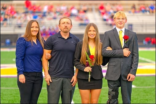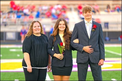 Following the introduction of all the attendants and their escorts, it was time to introduce the 2024 Bryan High School Homecoming Queen and her escort. The Homecoming Queen for this year was Macy Burton with escort Dominic Malanga. Macy is the daughter of Mary Beth and Mike Burton.