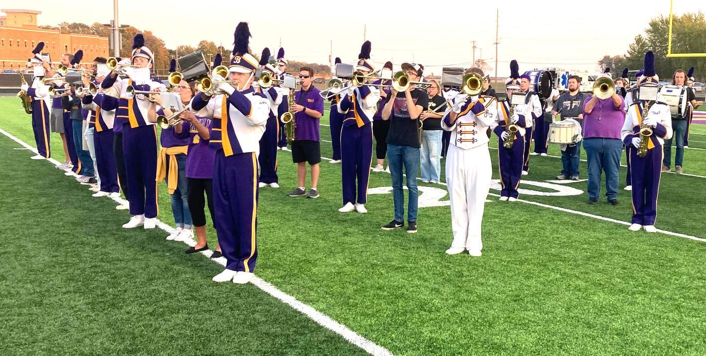 BHS COMBINED MARCHING AND ALUMNI BAND … The Bryan High School marching band, combined with the alumni band, performed the National Anthem during pre-game homecoming night ceremonies at Golden Bear Stadium.