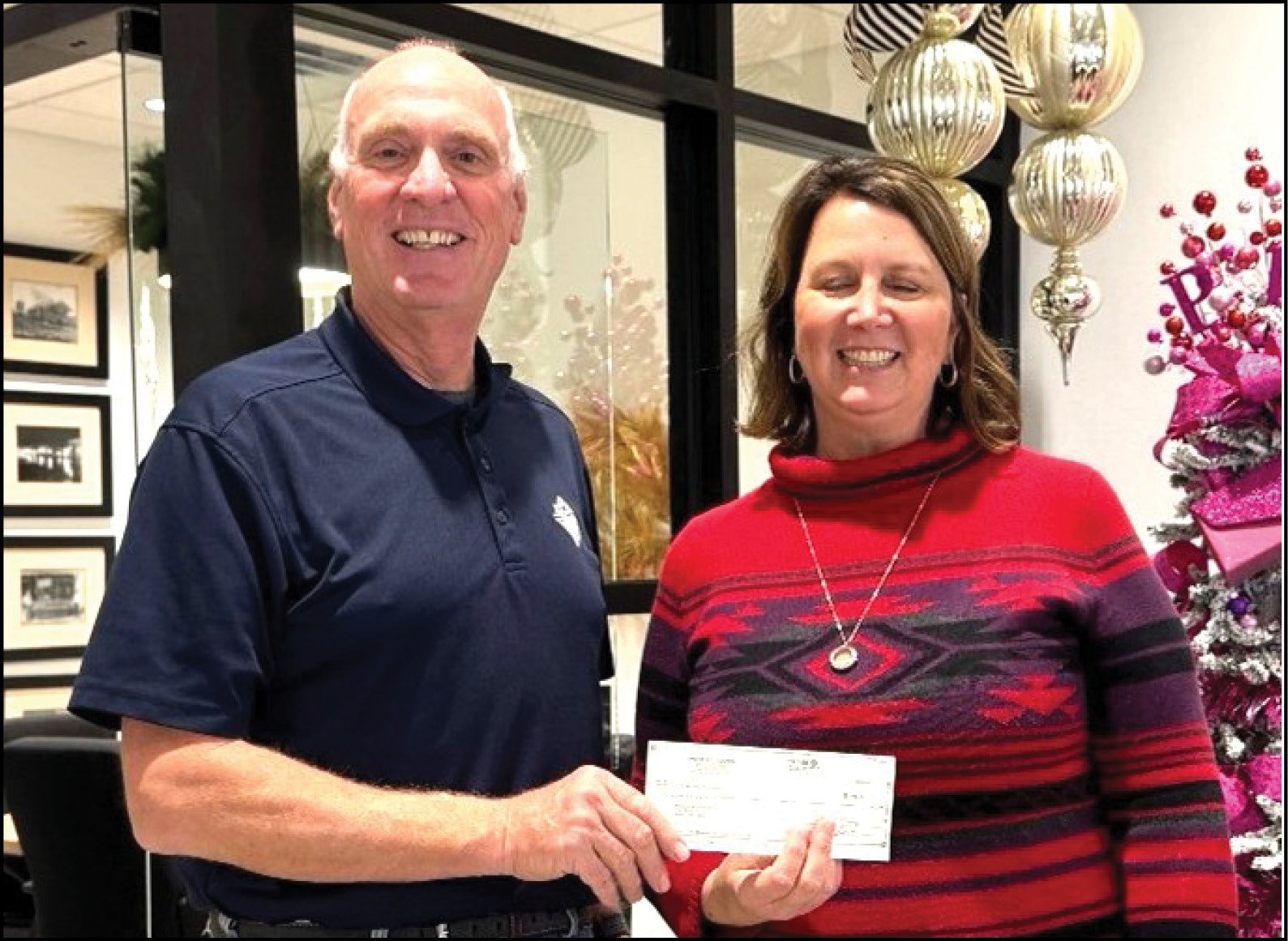 DONATION … Bryan Knight of Columbus Council 1915 shared the 2024 earnings from the ongoing ‘Measure Up” campaign. Measure Up donations area collected throughout the year to aid citizens with developmental disabilities. The donation of $160.00 was placed into the Bryan Inclusive Playground Project Fund within the Bryan Area Foundation. The Knights of Columbus appreciates the community’s support and opportunity to serve. Pictured here is Dave Lamore, Grand Knight of the Bryan Council 1915 Knights of Columbus and Kelly Voigt, Office Manager and Scholarship Coordinator at the Bryan Area Foundation.