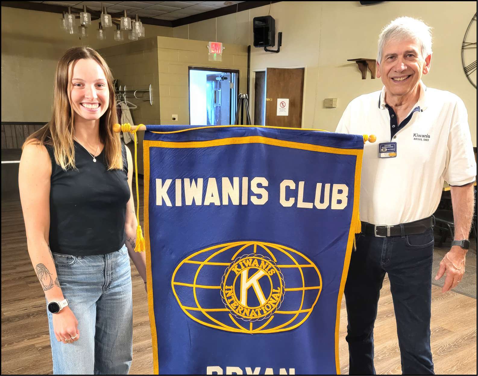 WORLD ADVENTURES … The guest speaker at the Kiwanis Meeting on May 28, 2025 was Bryan native and world traveler Katie Crites. Katie has packed more into her young life than almost anyone else has in an entire lifetime. She spoke with the group about her latest adventure which was hiking and completing the California Crest Trail. This latest hike was the last leg in her quest to complete the Triple Crown of Hiking that includes completing the Appalachian Trail Hike and the Continental Divide Trail as well. All of the hikes require months to complete and are very arduous. In addition to her hiking adventures she has traveled to Australia, India and Nepal. She spent one year in Australia and eight months in India and Nepal where she studied yoga and spent two to three months in the Himalayas. Also while she was in Nepal she climbed the Island Peak which is 20,226 feet tall. In addition to all of that, she is a triathlete and has completed two 1/2 Ironman Distance races as well as one Full Ironman Triathlon. She is such a gifted athlete that she has qualified for the World Ironman Championship. Next on her agenda is a trip to South Africa to compete in an Ultra Marathon of 55 miles. She is planning on another hiking adventure in the future that covers 3100 miles from Mexico to Canada which is named the Great Divide Hike. All is this was accomplished by her by the age of 24. Truly a remarkable young woman. Pictured left to right is Katie Crites and Kiwanian and program host David Schumm.
