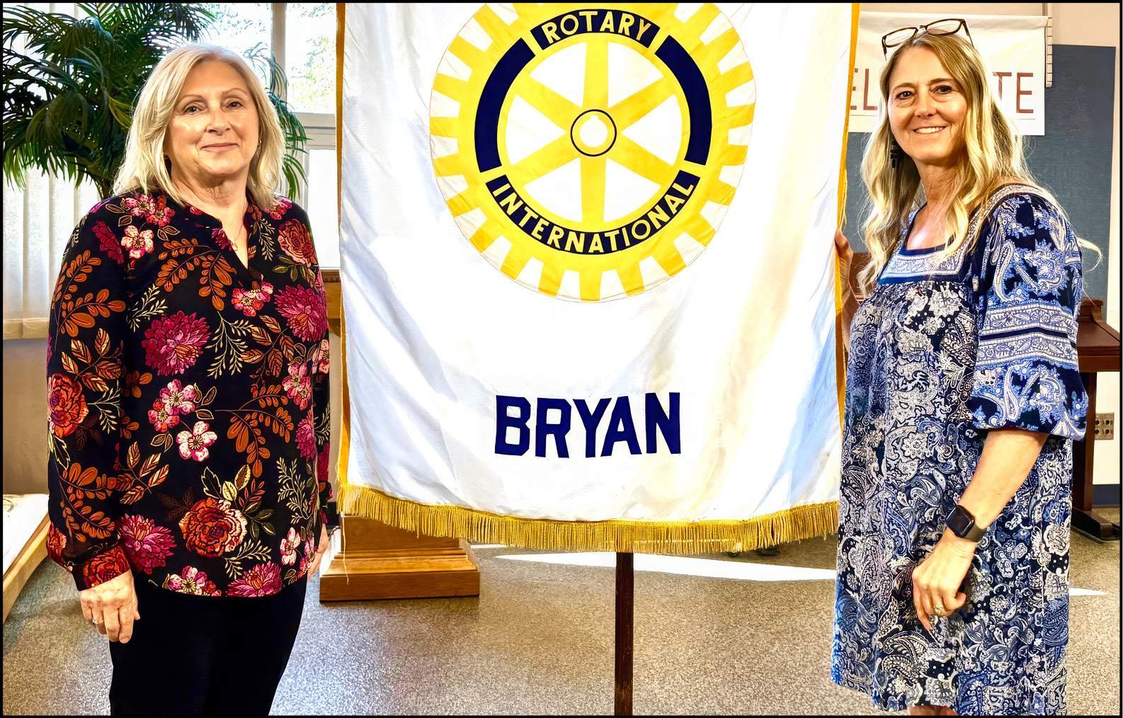 GIVING BACK … Power in the Purse, (PIP) was the topic at a recent Bryan Rotary Club meeting presented by board member, Jody Freeman. Established in 2015 by the Bryan Area Foundation, PIP is a women’s giving circle of approximately 100 members that meets four times a year. Being a member of the organization costs $250 per individual. The first $50 supports the PIP endowment fund and the remaining membership fee is used each quarter as a grant for the voted-on winning nonprofit organization. Since 2016, more than $247,000 has been given to 46 local projects. On October 20, PIP will celebrate 10 years of giving back to the community. New members are always welcome to join by contacting the Bryan Area Foundation to become part of a group that says, “Together, we can do great things!” Pictured is Speaker Jody Freeman and Rotarian Cheryl Andres.