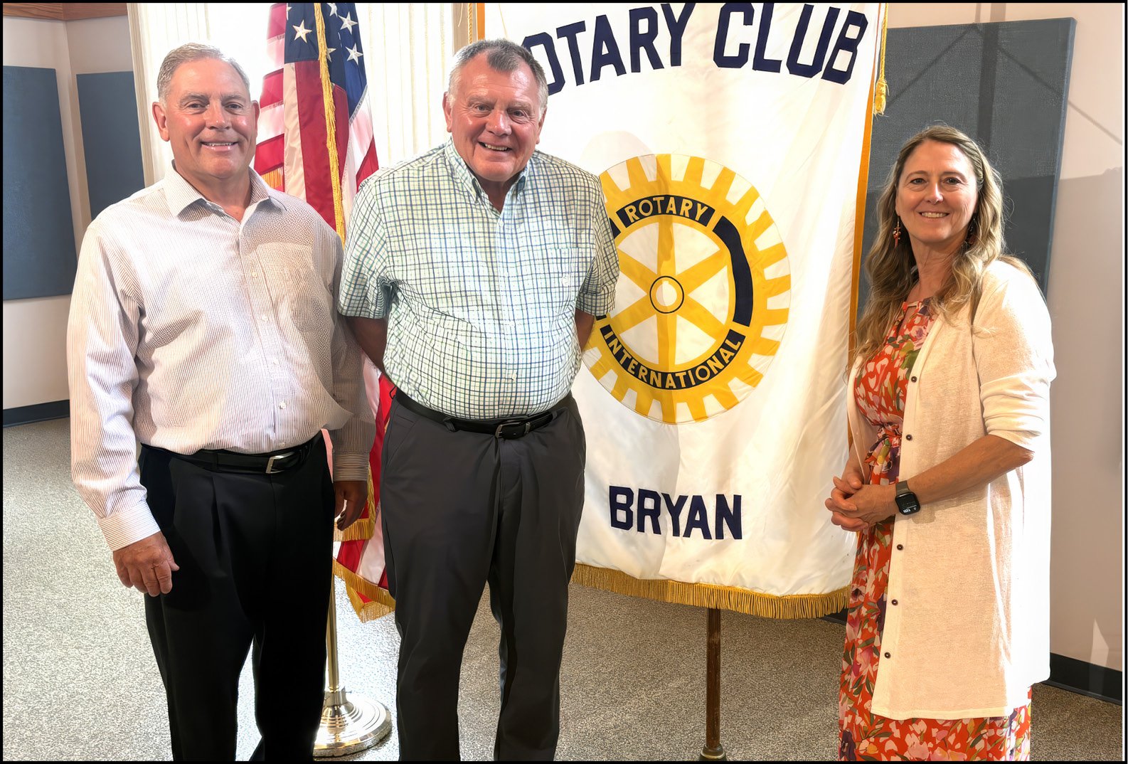 NEW OFFICERS … The Bryan Rotary Club installed new officers for the coming year. Damian Dorsten accepted the gavel as the new president. Cheryl Andres was honored for her service as outgoing president. Other officers are Craig Grieser, secretary and Rick Kuhman, treasurer. Pictured are Rotarian officers, Damian Dorsten, Rick Kuhman, Cheryl Andres.